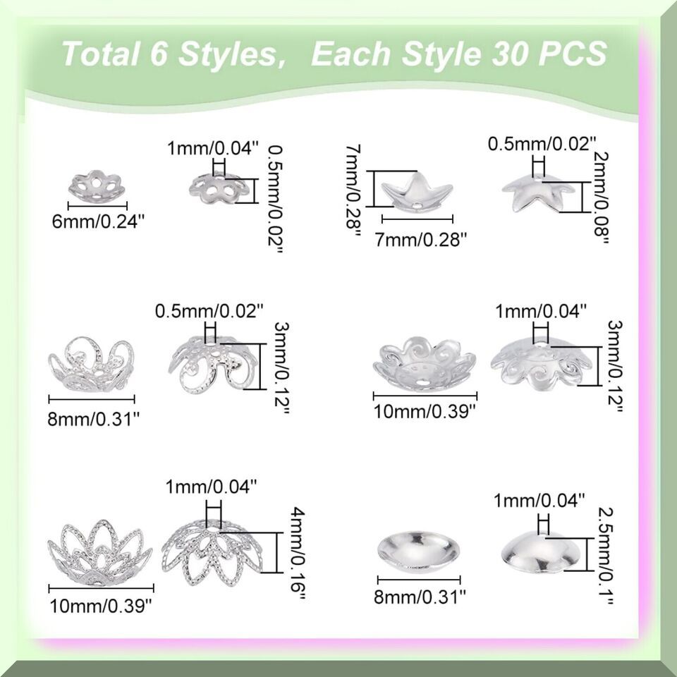 1. Versatile and Trendy: Our package includes bead caps in six different styles, allowing you to create unique and fashionable jewelry pieces. With 30 pieces per style and a total of 180 pieces, you'll have plenty of options to explore your creativity and stay on top of the latest trends.