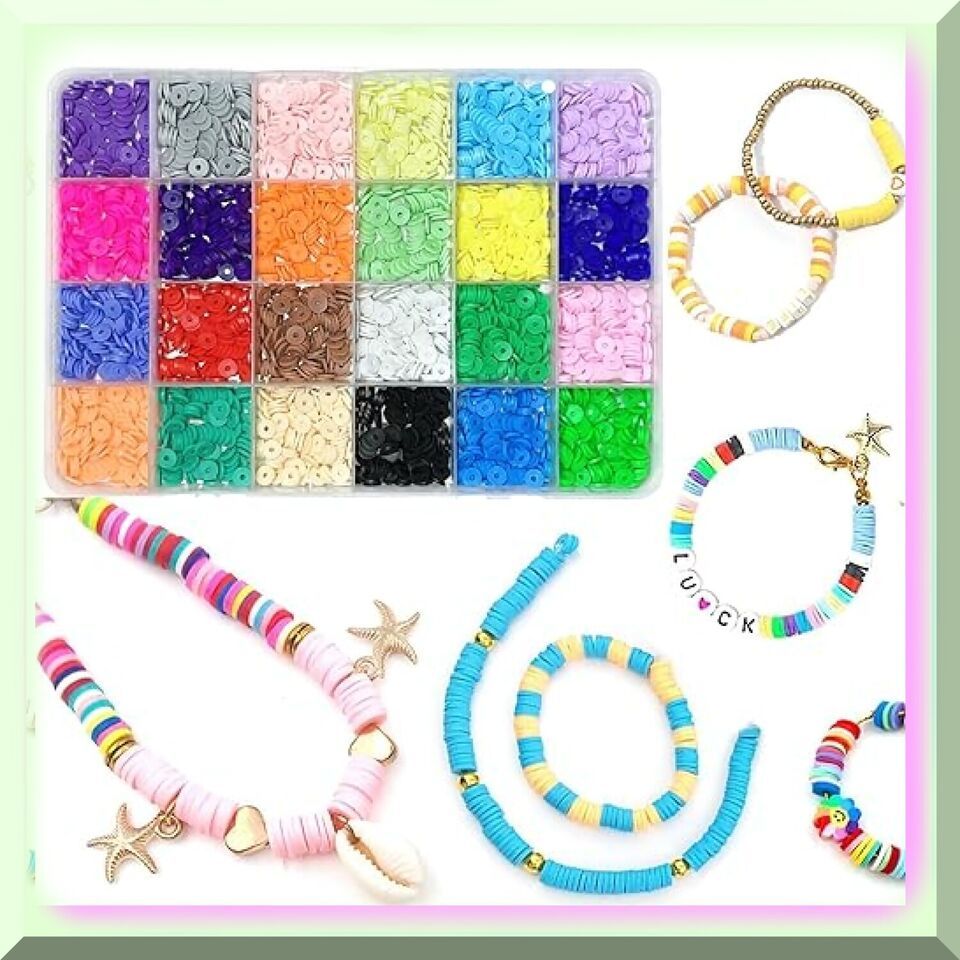 4800pcs Clay Beads for Bracelets Making Kit - 24 Colors Flat Round Polymer Clay