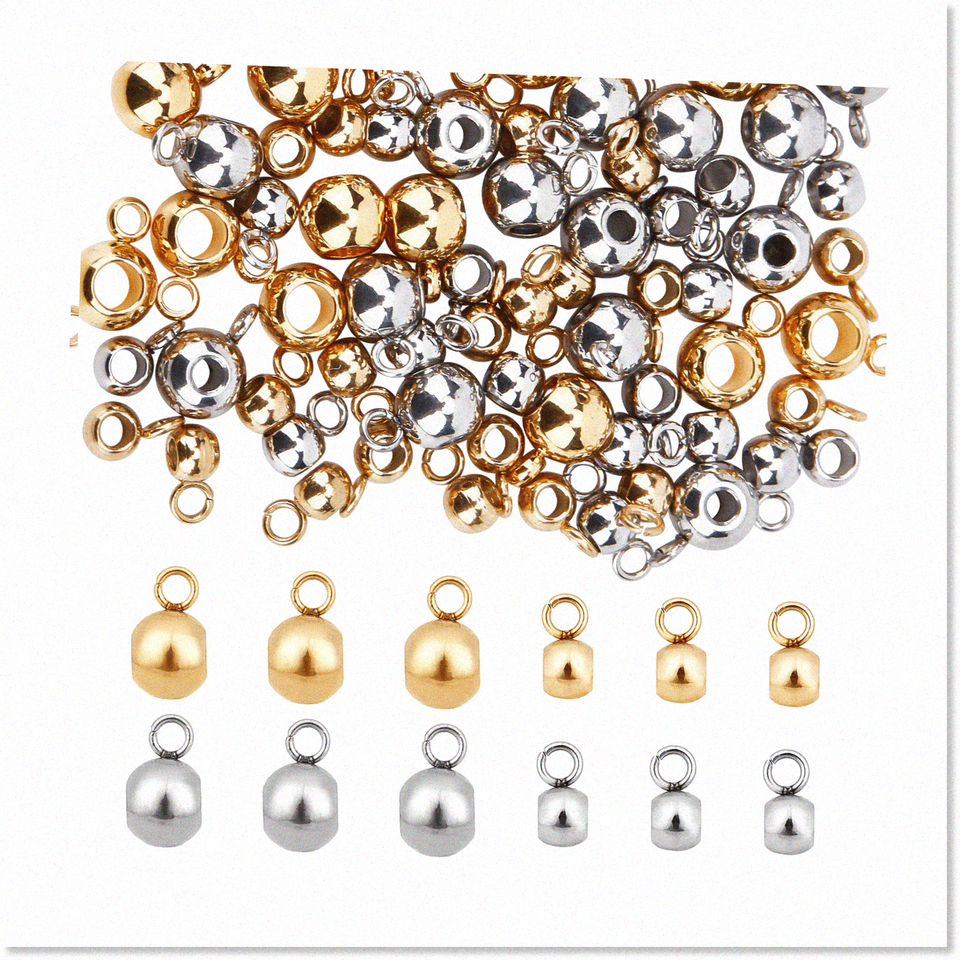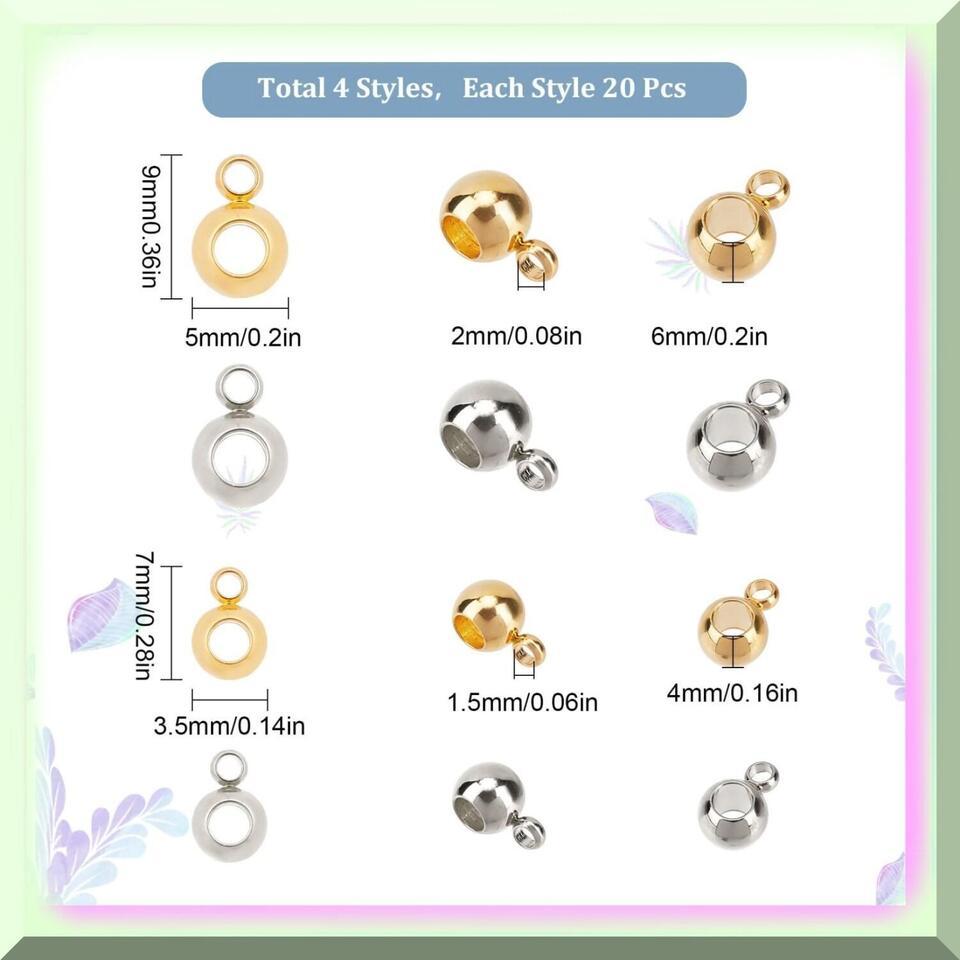 80Pcs Premium Stainless Steel Bail Beads Kit - 4 Styles for Jewelry Making, Bead