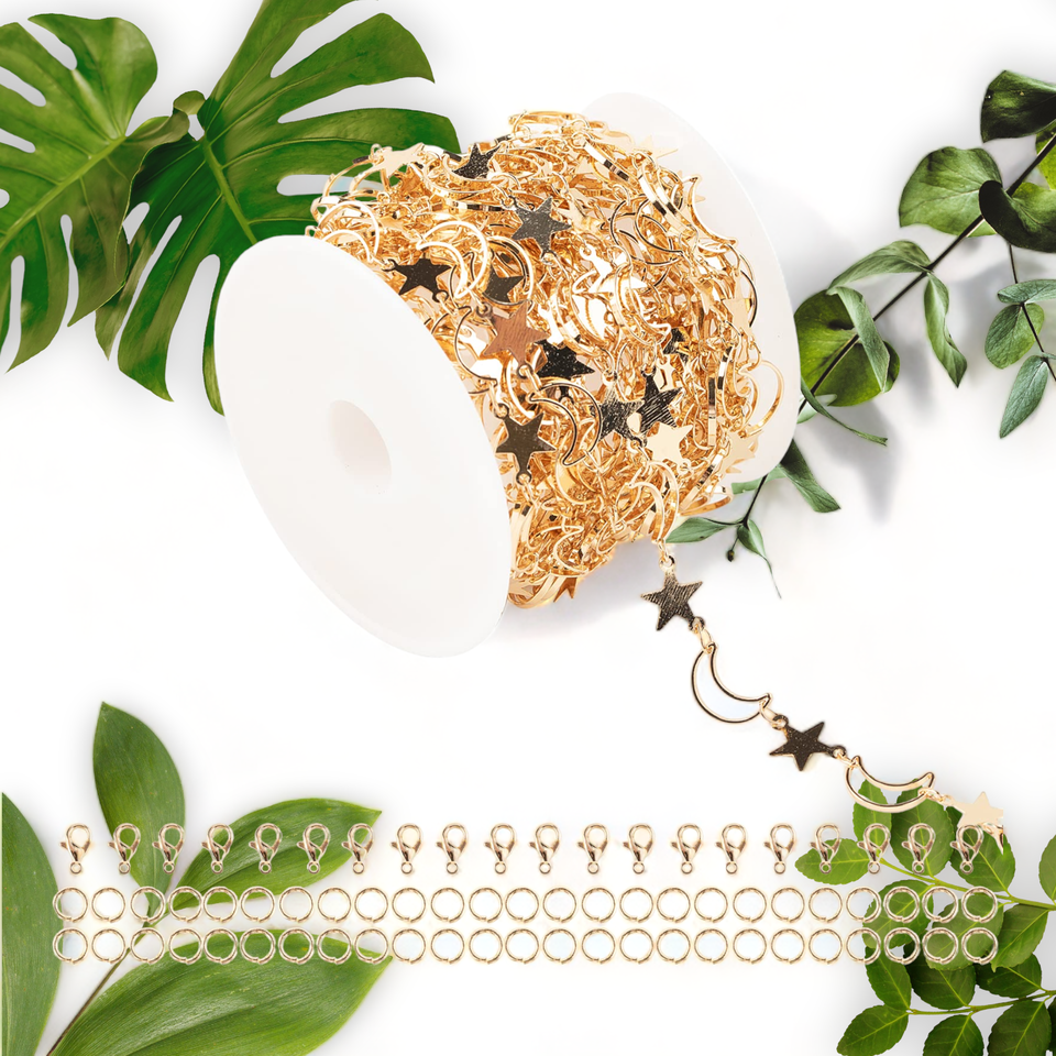 Gold Plated Handmade Chain Roll with Star Moon Link - 16.4ft/5m - DIY Necklace B