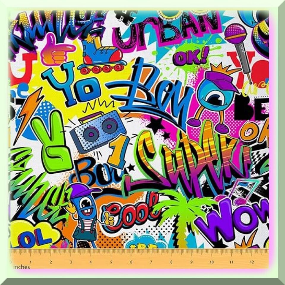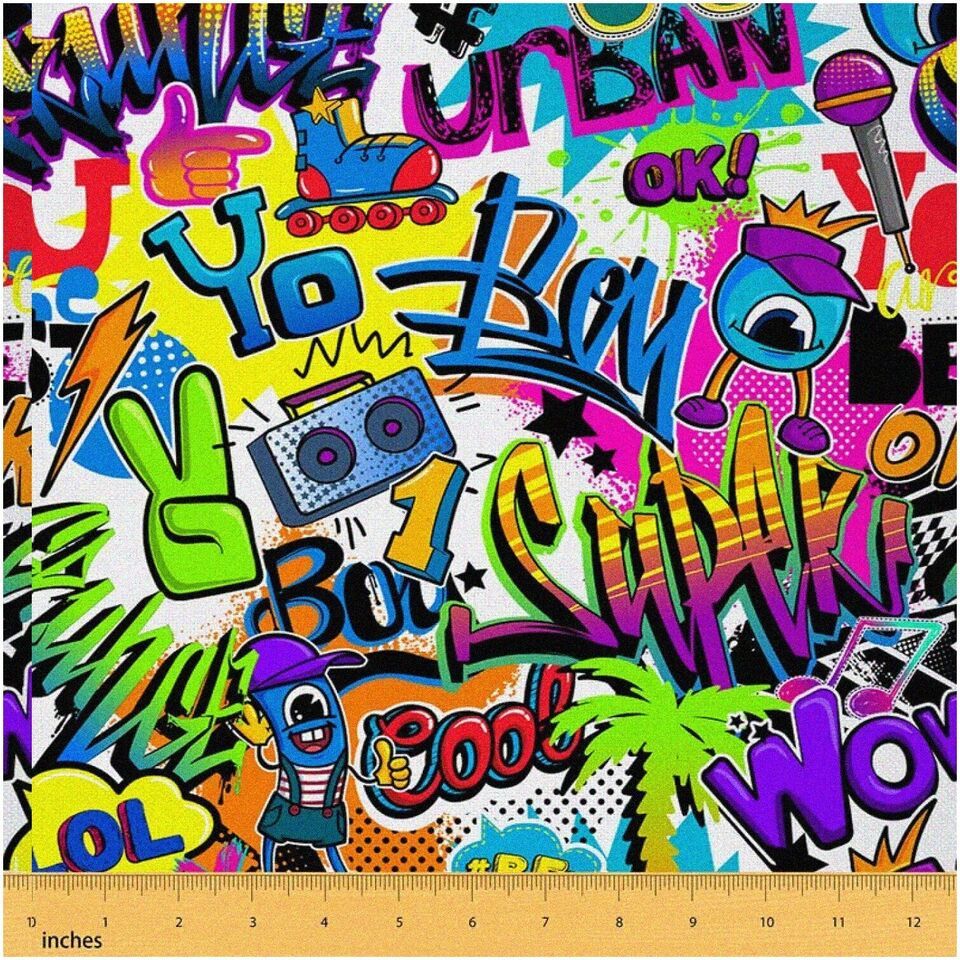 Graffiti Chic Upholstery Fabric: Hip Hop Street Culture Dec