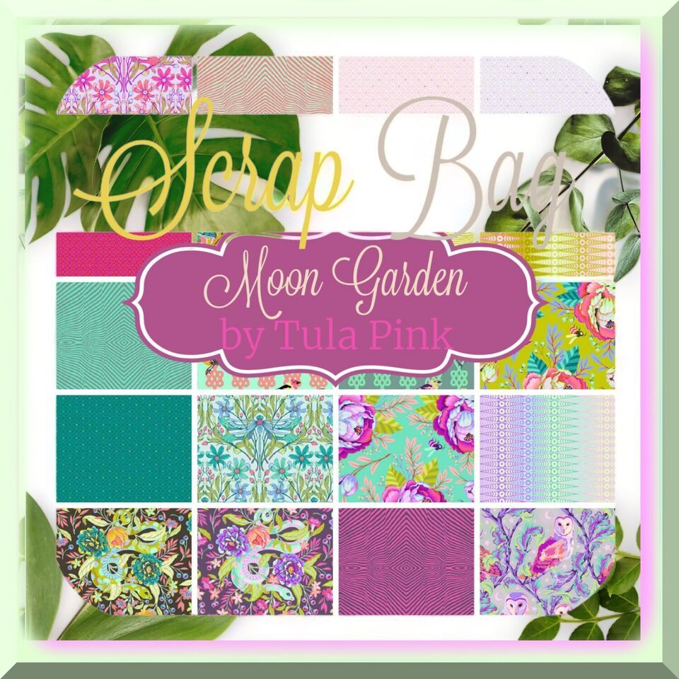 Indulge in the celestial beauty of Tula Pink's Moon Garden with this enchanting scrap bag! Each bag is a delightful surprise, containing 2 yards of fabric in a variety of sizes and designs. From 2 1/2-inch to 17-inch widths, these 100% cotton, quilt shop quality fabrics are perfect for your next quilting project. Hand-picked and machine cut in-house, each bag is a unique treasure waiting to be discovered. Embrace the magic of Moon Garden and let your creativity soar! -------- FEATURES:------- A) 100% Quilters Cotton: Crafted with utmost care, our product is made from premium quality quilters cotton. This fabric is renowned for its exceptional softness, durability, and breathability, ensuring a comfortable and enjoyable quilting experience. Immerse yourself in the luxurious feel of this fabric as you create your masterpiece.