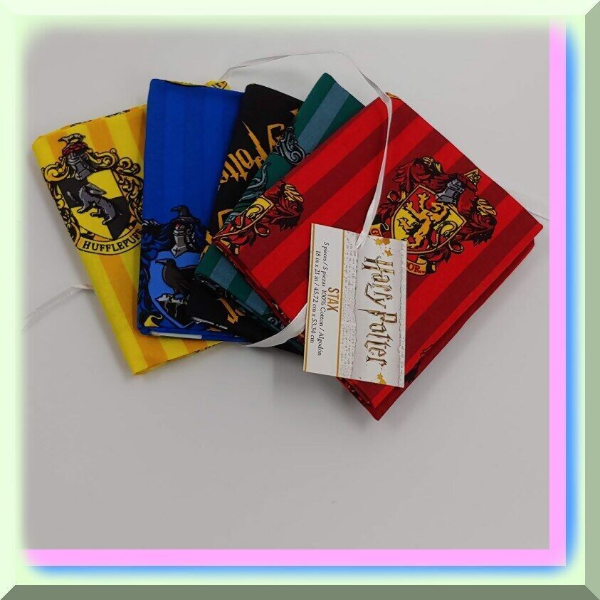 Step into the enchanting world of Harry Potter with the mesmerizing "The Four Houses of Hogwarts" collection by STAX. Immerse yourself in the magic with this captivating 5 piece fat quarter bundle, featuring the iconic Four Houses Crests on their respective house colors background, along with the legendary Harry Potter himself on a striking black background. Each piece measures a generous 18 x 21 inches, ensuring you have ample fabric to bring your own wizarding creations to life. Unleash your creativity and let the magic unfold! -------- FEATURES:------- 1. Aesthetic Appeal: The Harry Potter's Four Houses Collection boasts a mesmerizing array of five enchanting patterns, including the iconic Hogwarts Crest. Each pattern is meticulously crafted to capture the essence of the four houses, Gryffindor, Hufflepuff, Ravenclaw, and Slytherin. These visually stunning designs are sure to captivate any Harry Potter enthusiast and add a touch of magic to their creations.