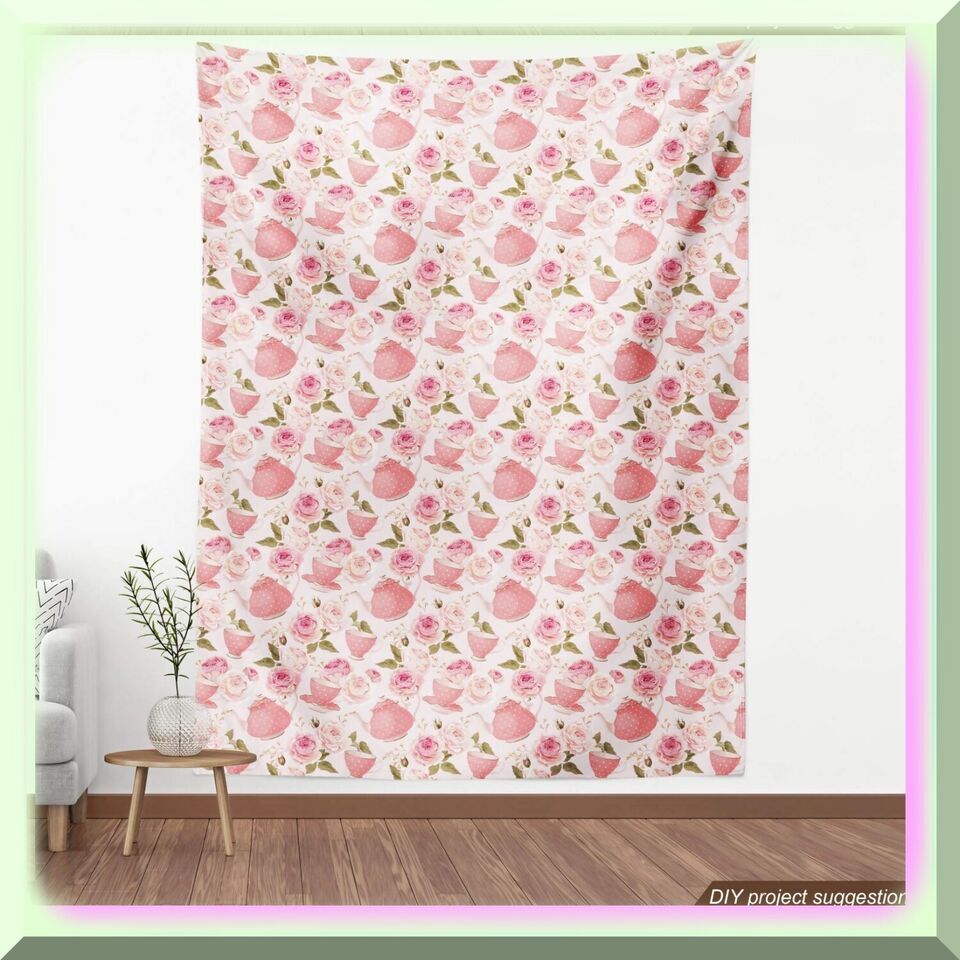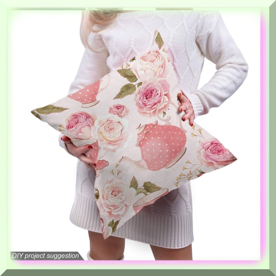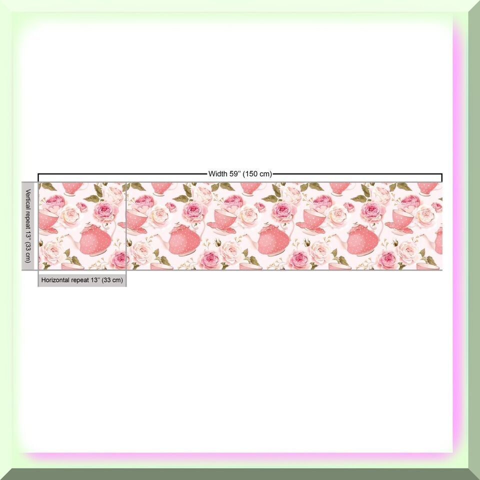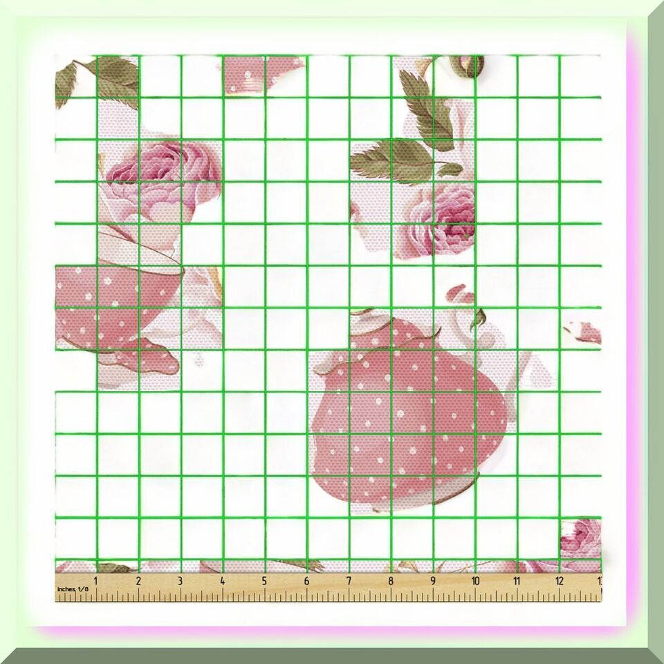 Romantic Rose Garden Fabric - Vintage Style Tea Cups Print