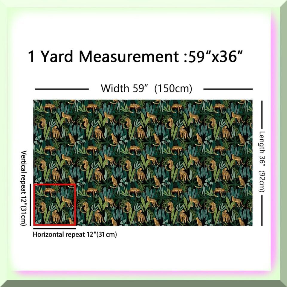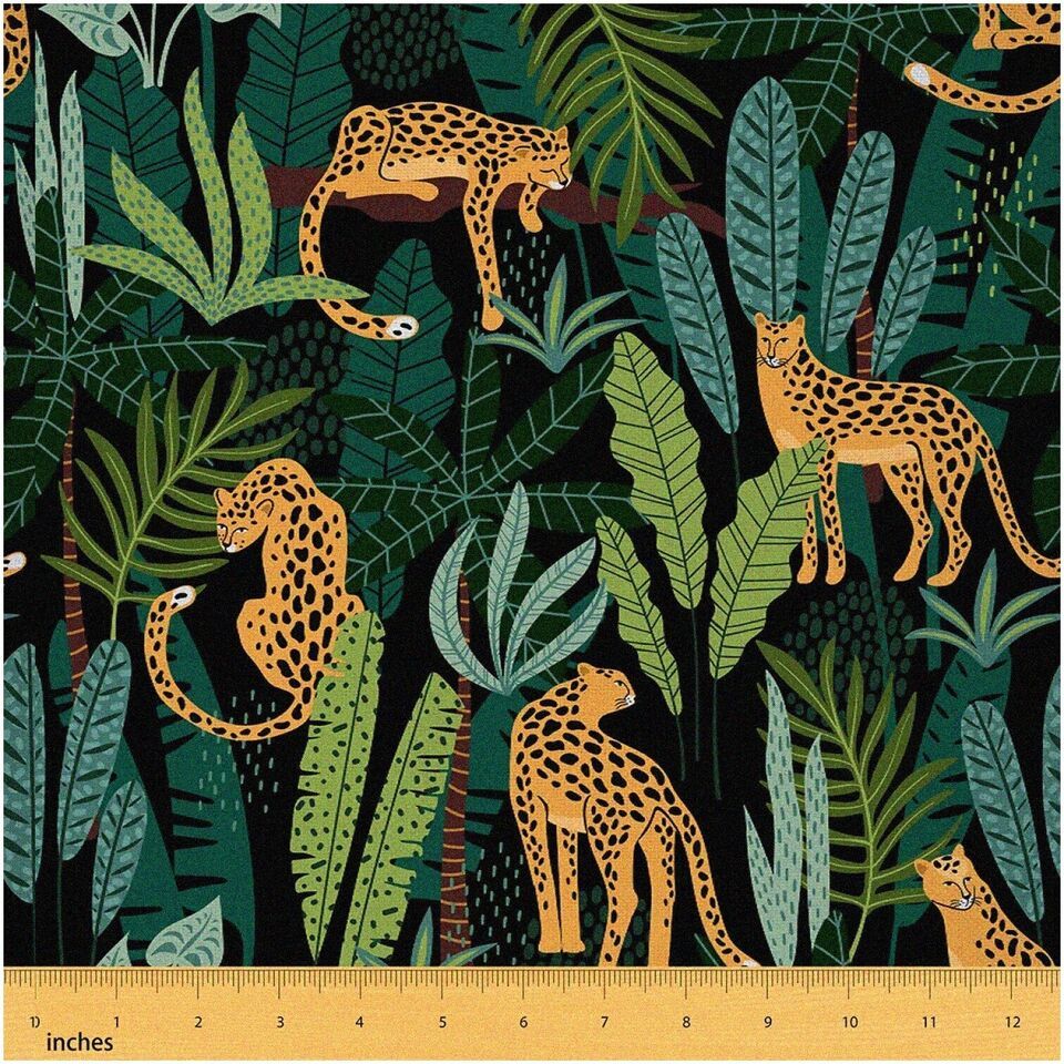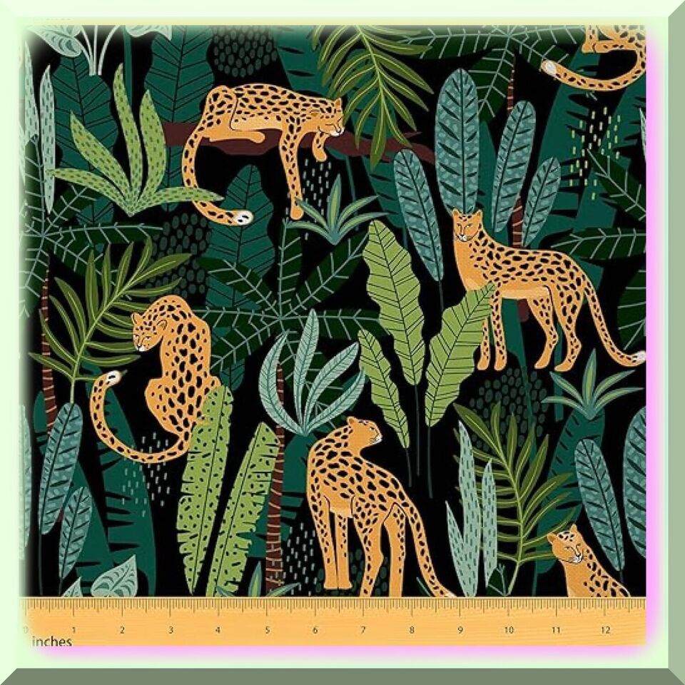 Transform your space into a wild oasis with our Leopard Fabric by The Yard. This captivating Cheetah Print Upholstery Fabric features vibrant Hawaiian Tropical Leaves, adding a touch of exotic charm. Perfect for both indoor and outdoor use, this Wildlife Animal Safari Fabric is not only visually stunning but also waterproof. Get ready to unleash your creativity with this lush Green fabric, available in a generous 2-yard length.---FEATURES:---A. Leopard Fabric by The Yard