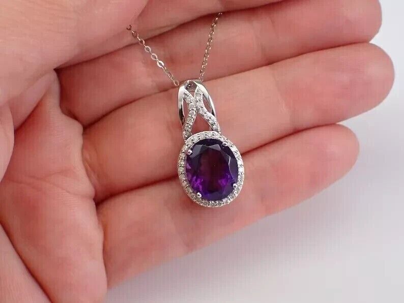 2.00Ct Oval Cut Lab Created Purple Amethyst Beauty Pendant 14K White Gold Plated