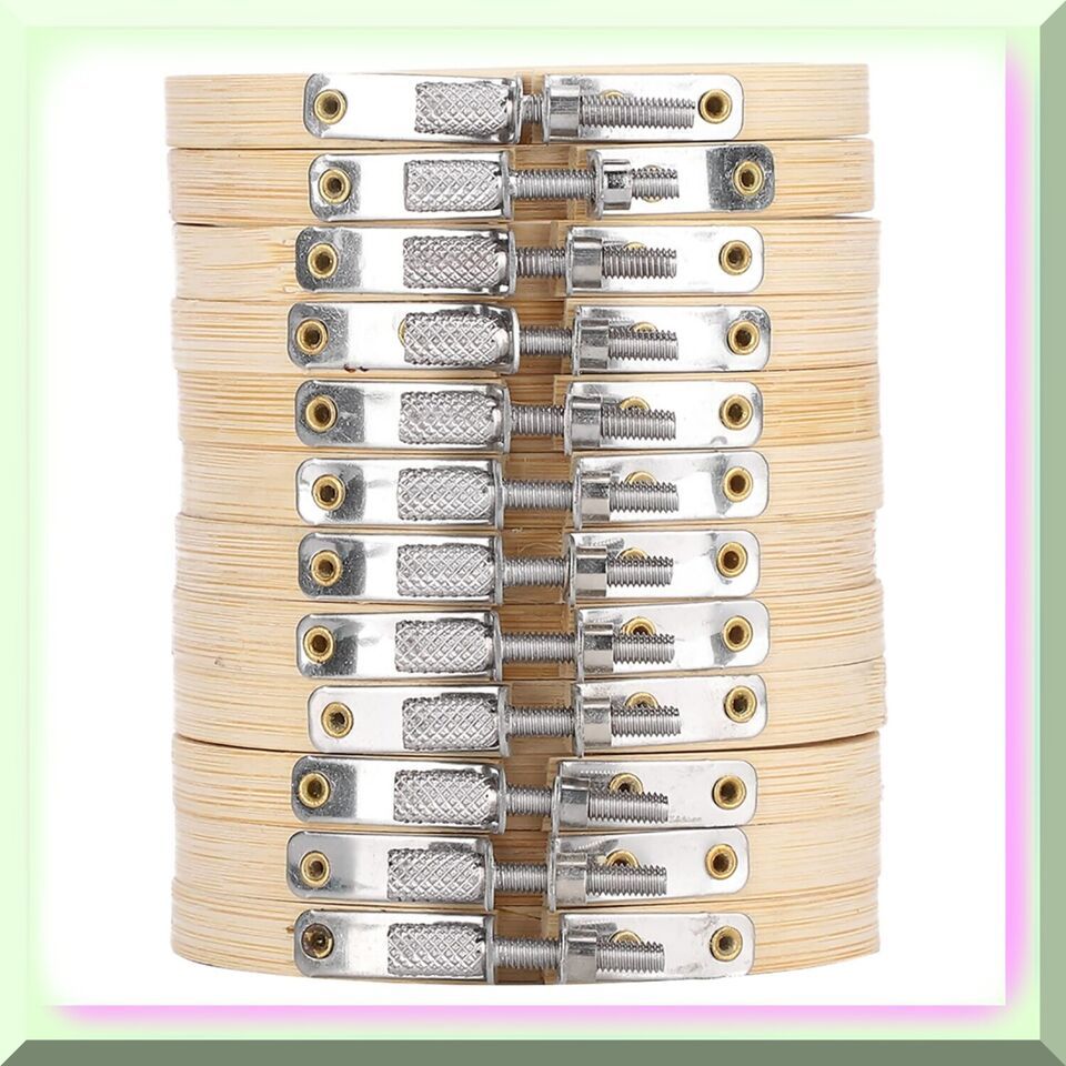 Introducing our exquisite collection of brand new embroidery hoops! Crafted with utmost care, these hoops are made from eco-friendly bamboo material, ensuring durability and sustainability. Available in a captivating array of colors, these hoops will add a touch of elegance to your embroidery projects. Each set includes 12pcs of hoops, featuring an inner diameter of 8cm and an outer diameter of 9cm (with a slight 1cm error). Get ready to unleash your creativity with these versatile and high-quality embroidery hoops! ===== FEATURES: ====== Versatile---Adaptable to various crafts like embroidery, cross stitch, silk painting, and DIY decorations.
