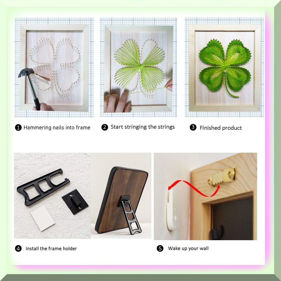 Unleash your creativity with this DIY project that is perfect for beginners! Create your very own unique and stunning string art to proudly showcase in any room of your home. Whether it's your bedroom, living room, kitchen, or even your office, this beautiful piece of home decor will add a touch of elegance to any space. It's also a fantastic idea for a personalized gift! Our kits are made with high-quality materials, ensuring a durable and long-lasting finished product. The premium solid wood frame adds a touch of sophistication, while the punched bottom of the drawing board makes it easy to create your masterpiece. The frame size is approximately 23x28cm, allowing for a generous canvas to work with. The whole set includes everything you need, from a hammer and scissors to nails and cotton strings. We even provide detailed instructions to guide you through the process. So grab your kit and get ready to enjoy a great time crafting your very own string art. And if you have any questions, don't hesitate to reach out to us. We're here to help and can even send you a how-to video if needed. Let your creativity shine and create something truly special with our DIY string art kit! ====== FEATURES: ======== A) Bonding Time: Engage in a delightful journey of creativity and connection with our captivating String Art Kit. B) Kids' Delight: Watch as your little ones' eyes light up with joy and excitement as they explore the world of string art. C) Family Fun: Strengthen the bond between parents and children as you embark on a shared adventure of artistic expression. D) Communication Catalyst: Spark meaningful conversations and foster open communication within your family while crafting beautiful string art masterpieces.