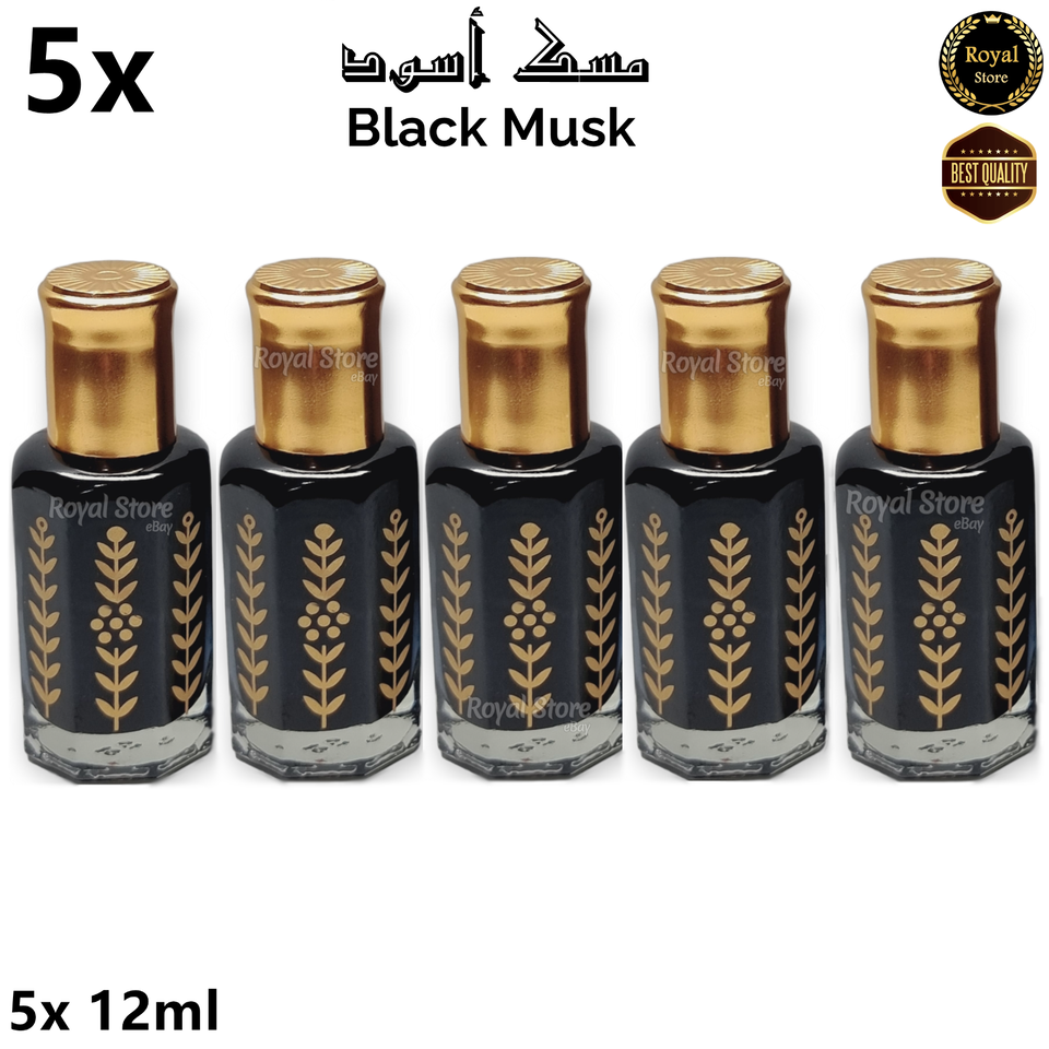 5x Black Musk 12ml Dark Arabic Perfume Oil Ruqya Islamic High Quality مسك...