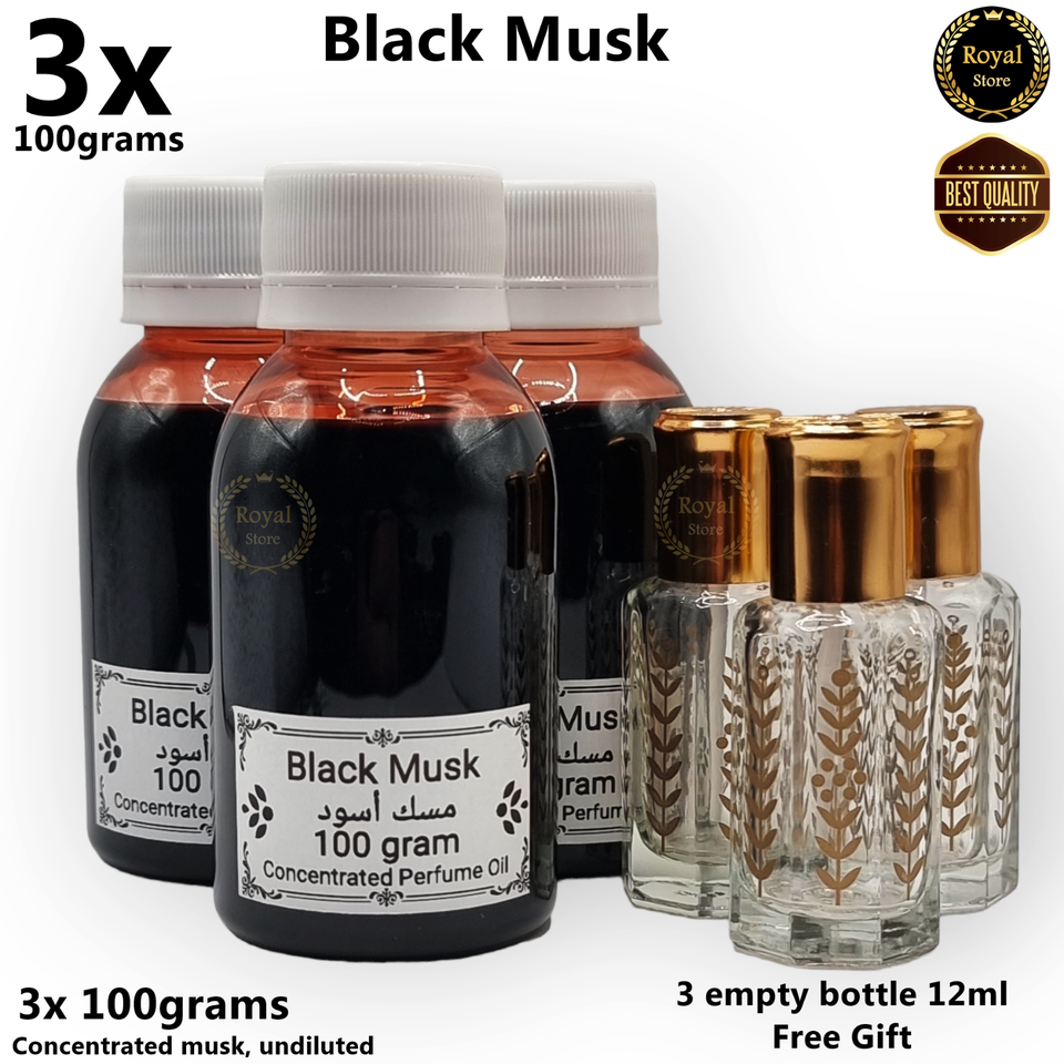 3x Black Musk 100g Concentratedl Arabian misk Thick perfume tahara oil مسك...