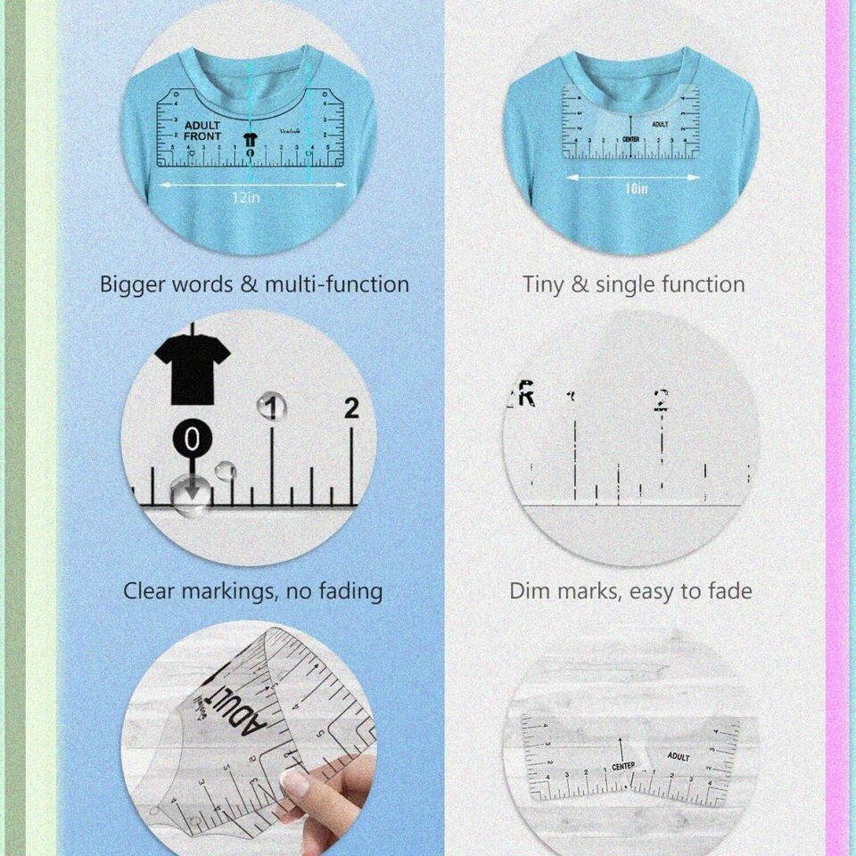 (A) **Precision Perfect Placement**: Say goodbye to guesswork and hello to flawless designs! The Vowlove ruler ensures your heat transfer vinyl and sublimation projects are perfectly aligned every single time. Achieve professional-grade accuracy with ease, making your shirts look like they came straight from a high-end boutique.