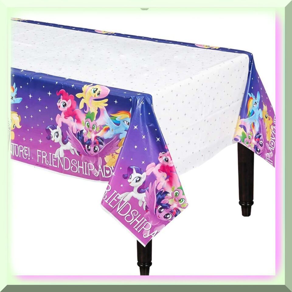 B) Beloved Characters: Delight your little one and their friends as they gather around a table adorned with their favorite My Little Pony characters. From the lovable Twilight Sparkle to the mischievous Pinkie Pie, our tablecover brings together the entire pony crew, creating an atmosphere of joy and familiarity.