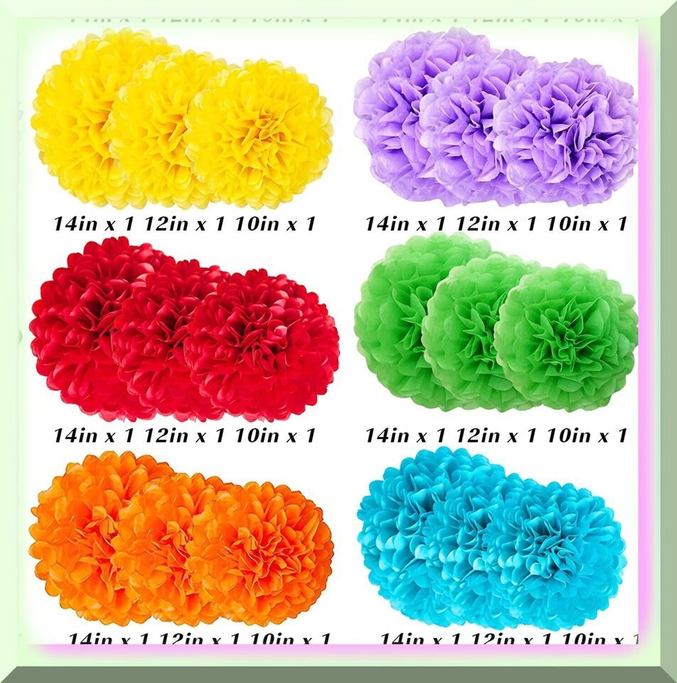 Celebrate & Bloom Party Kit - Vibrant 18pcs Tissue Paper Pom Poms: 14in, 12in, 1