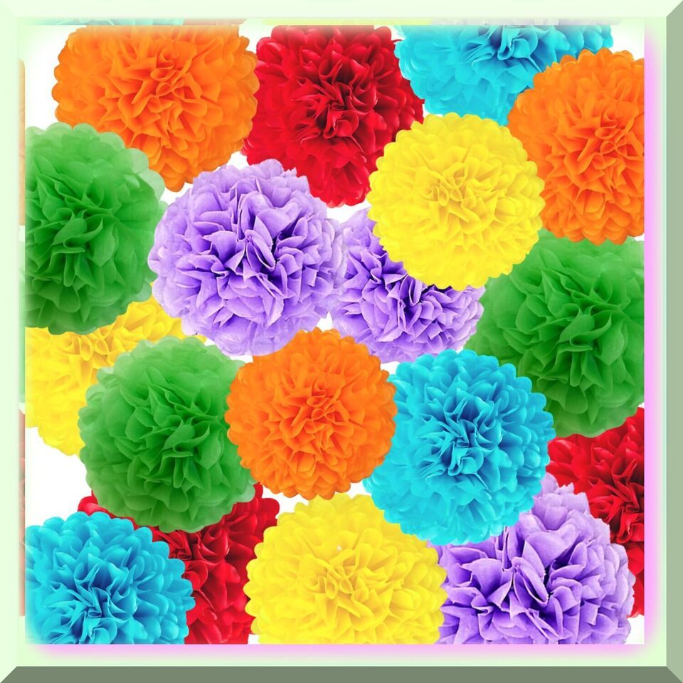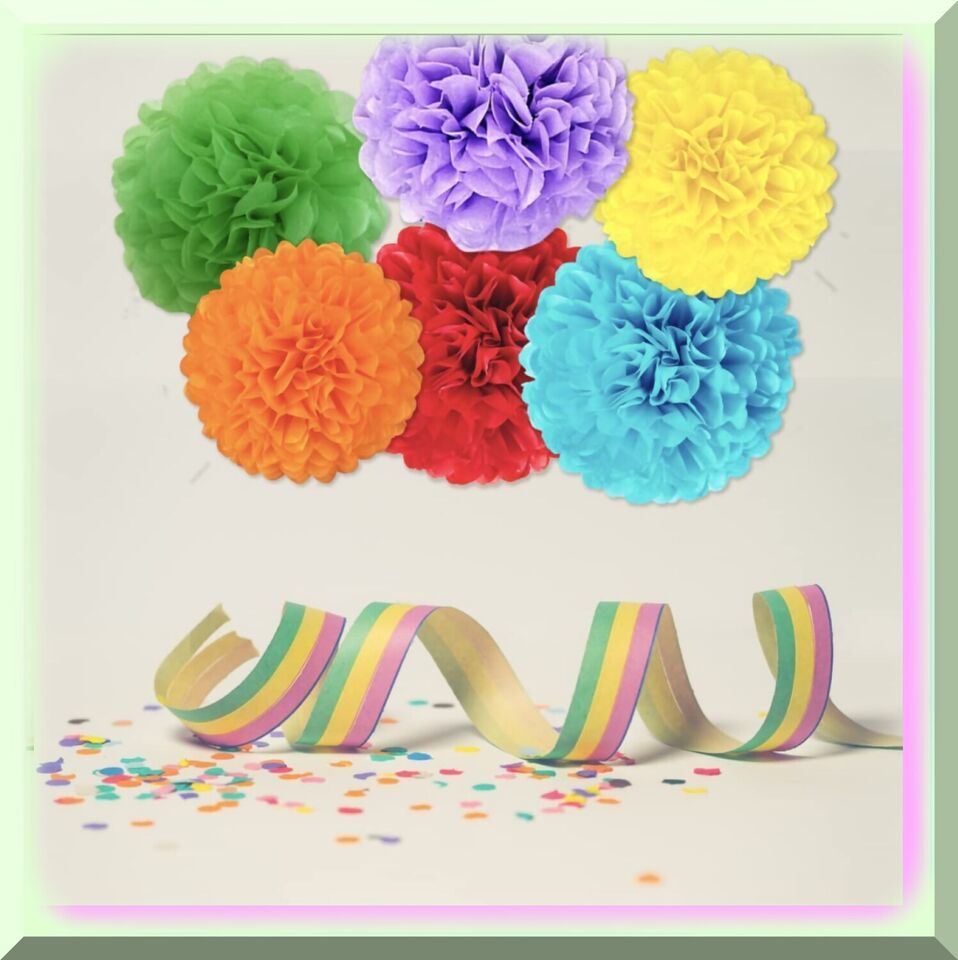 Elevate your party to new heights with our stunning collection of 18pcs Decorative Tissue Paper Pom Poms! These exquisite pom poms, available in 14in, 12in, and 10in sizes, will infuse your celebration with a touch of romance and coziness. With their beautiful and rich colors, they create a mesmerizing atmosphere that will captivate your guests. Whether it's a birthday party, a wedding celebration, or a fiesta, our pom poms are the perfect choice. The great color combination of red, yellow, green, orange, blue, and light purple makes them versatile for any occasion. Use them as garland decorations, party photo props, or even for nursery christenings. Each pom pom comes with a white ribbon and easy-to-follow instructions, making them a breeze to DIY and use. The package includes 18 paper pompom flowers and 2 rolls of ribbon. Get ready to transform your indoor or outdoor space into a magical wonderland with our fabulous party decorations!