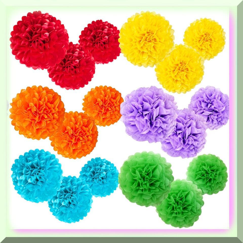 Astonishing Array of Artistry: This package boasts a bountiful bundle of 18 paper pom poms, each exquisitely crafted with meticulous attention to detail. These vibrant decorations come in a kaleidoscope of colors, including ravishing Red, brilliant Blue, luscious Light Purple, gorgeous Green, opulent Orange, and radiant Yellow. Just like a mesmerizing rainbow, this assortment will infuse your space with a captivating burst of chromatic charm.