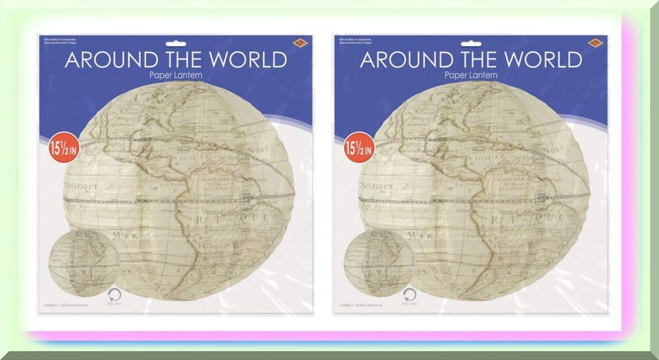 Add a touch of wanderlust to your party with our Around the World Paper Lanterns! This package includes two 15.5-inch lanterns made of paper with a neutral World Globe design. Hang them up with the metal supports and transparent cords provided. Perfect for any occasion, our party supplies and novelty items will make your event unforgettable. With over 8,000 products for every theme imaginable, we've been celebrating life's events since 1900. Our mission is to create high-quality products using the finest materials. Join us in celebrating one party at a time - we are The Company!