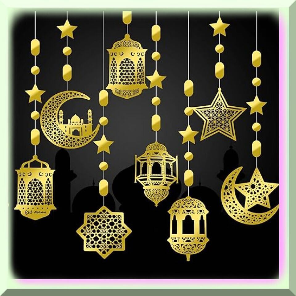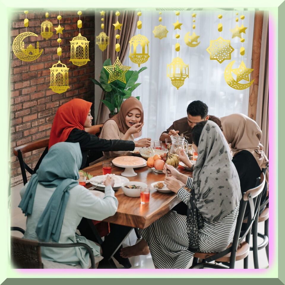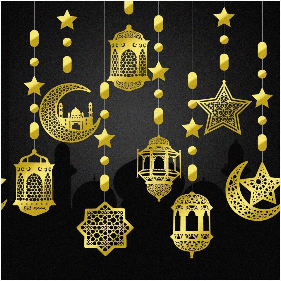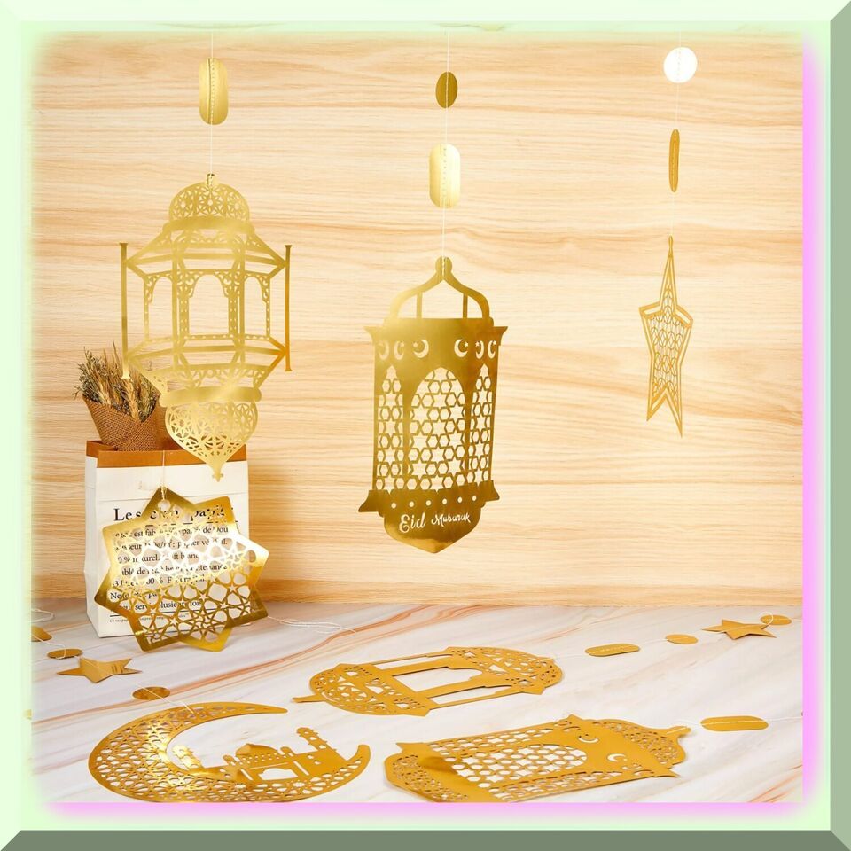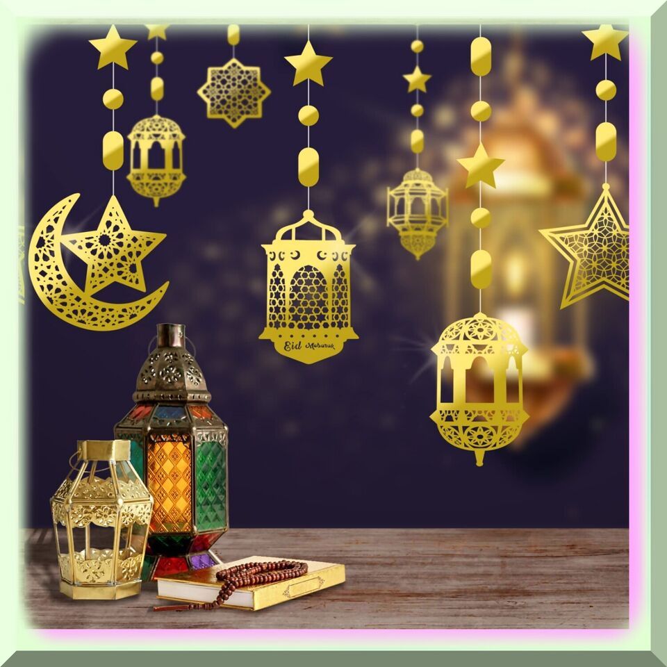 Moonlit Ramadan Celebration: 24-Piece Eid Decoration Set with Star Moon Lantern