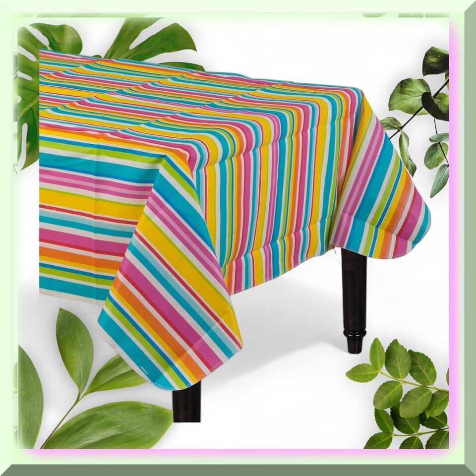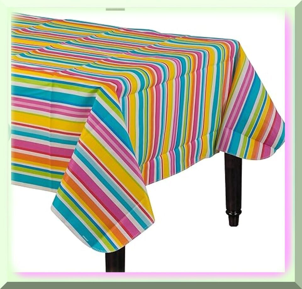 PartyPerfect Striped Vinyl Tablecloth - Vibrant Multicolor Design, 52" x 90" - S