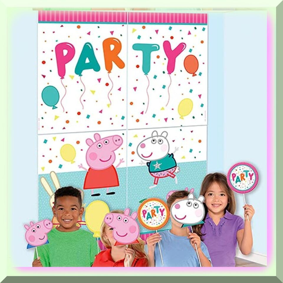Throw an unforgettable birthday bash for your little one with these vibrant Peppa Pig scene setters! Transform any space into a whimsical wonderland with Peppa and Suzie, "Party" text, and a burst of balloons and confetti. Plus, with assorted Peppa Pig props, your guests will have a blast snapping pics against these playful backdrops. Let the birthday magic begin!