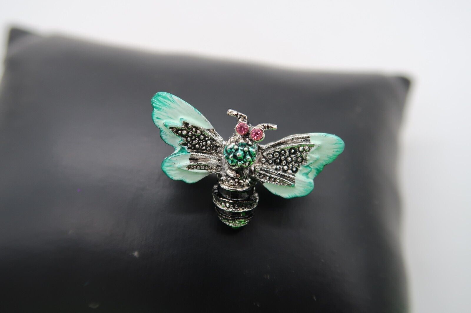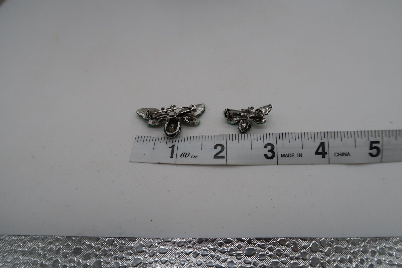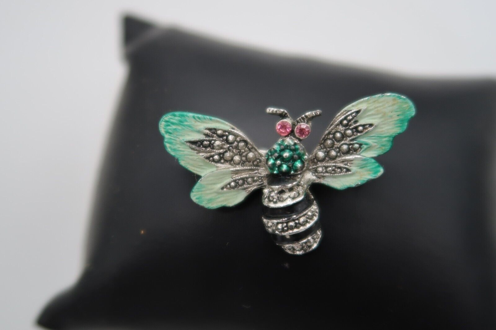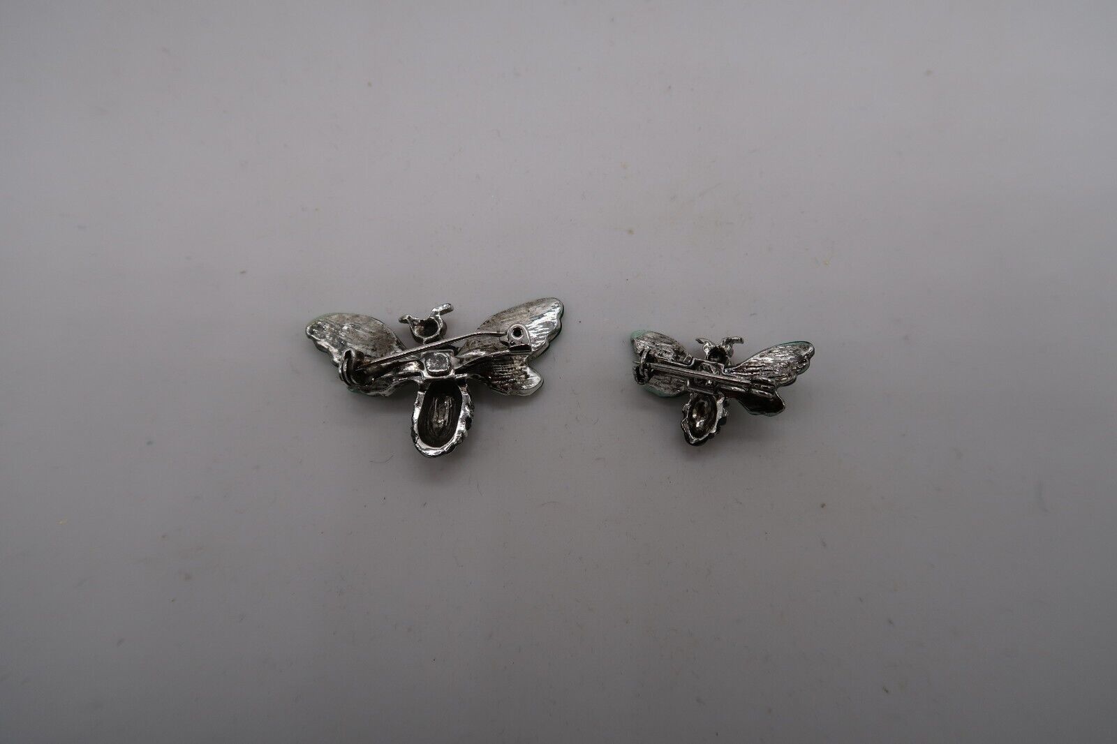 Vtg Silver Tone Pink Rhinestone Eyes Enamel Flying Bee Brooch Scatter Pin Set