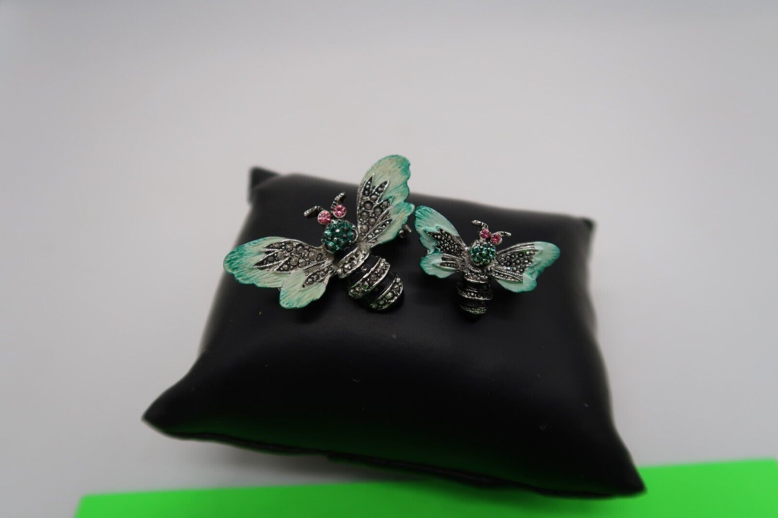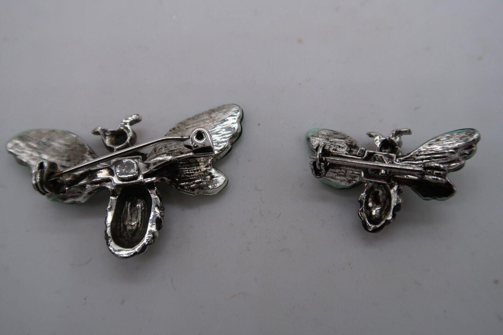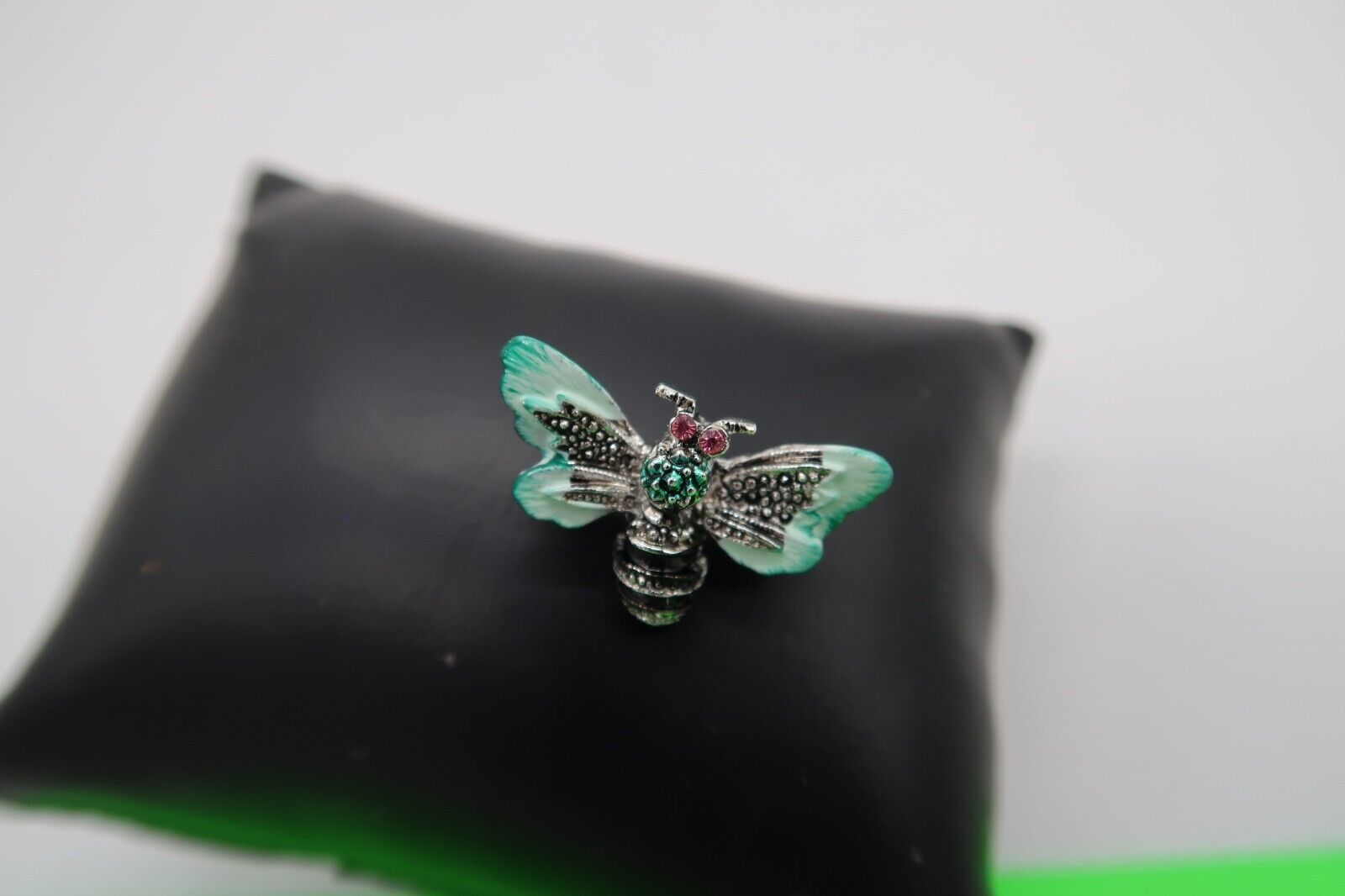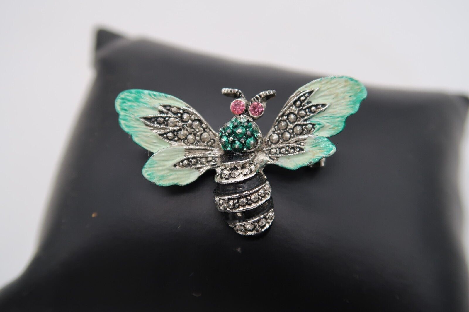Vtg Silver Tone Pink Rhinestone Eyes Enamel Flying Bee Brooch Scatter Pin Set