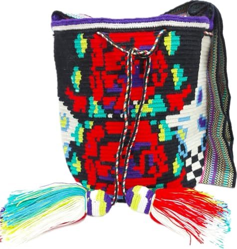 Product description: Immerse yourself in the vibrant and intricate artistry of the Wayuu tribe with this stunning crochet tote bag. Handcrafted by skilled artisans in Colombia, each bag is a unique masterpiece, meticulously woven with vibrant colors and intricate patterns that tell a story of tradition and culture. The sturdy cotton fibers and tight crochet stitches ensure durability, making it the perfect companion for your daily adventures or beach getaways. With its roomy interior and comfortable strap, this tote bag effortlessly combines functionality and style. Embrace the beauty of indigenous craftsmanship and add a touch of bohemian flair to your wardrobe with this one-of-a-kind Wayuu mochila bag. Approximate dimensions: 13 inches x 11 inches x 6 inches (34 cm x 30cm).