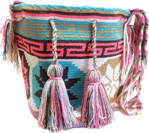 Product description: Immerse yourself in the vibrant and intricate artistry of the Wayuu tribe with this stunning crochet tote bag. Handcrafted by skilled artisans in Colombia, each bag is a unique masterpiece, meticulously woven with vibrant colors and intricate patterns that tell a story of tradition and culture. The sturdy cotton fibers and tight crochet stitches ensure durability, making it the perfect companion for your daily adventures or beach getaways. With its roomy interior and comfortable strap, this tote bag effortlessly combines functionality and style. Embrace the beauty of indigenous craftsmanship and add a touch of bohemian flair to your wardrobe with this one-of-a-kind Wayuu mochila bag. Approximate dimensions: 13 inches x 11 inches x 6 inches (34 cm x 30cm).