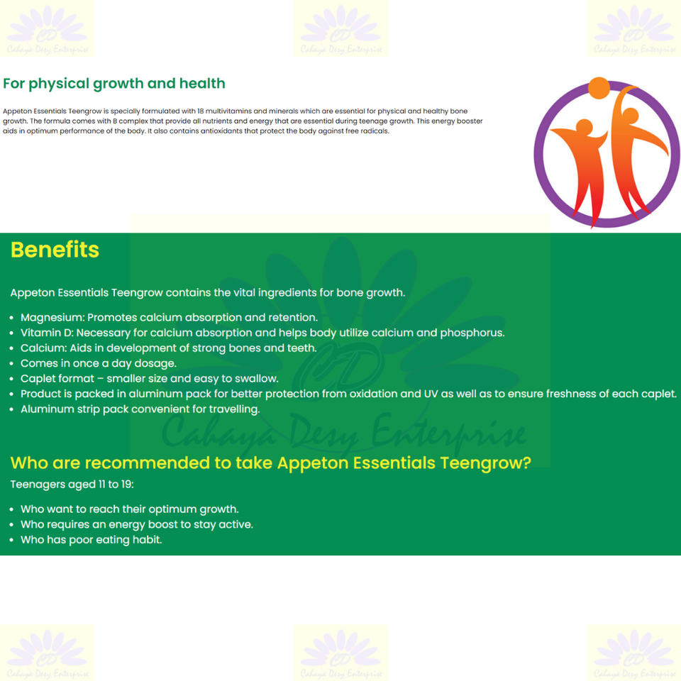 1 X Appeton Essential Teengrow Increase Height Growth Teenagers -FREE SHIPPING