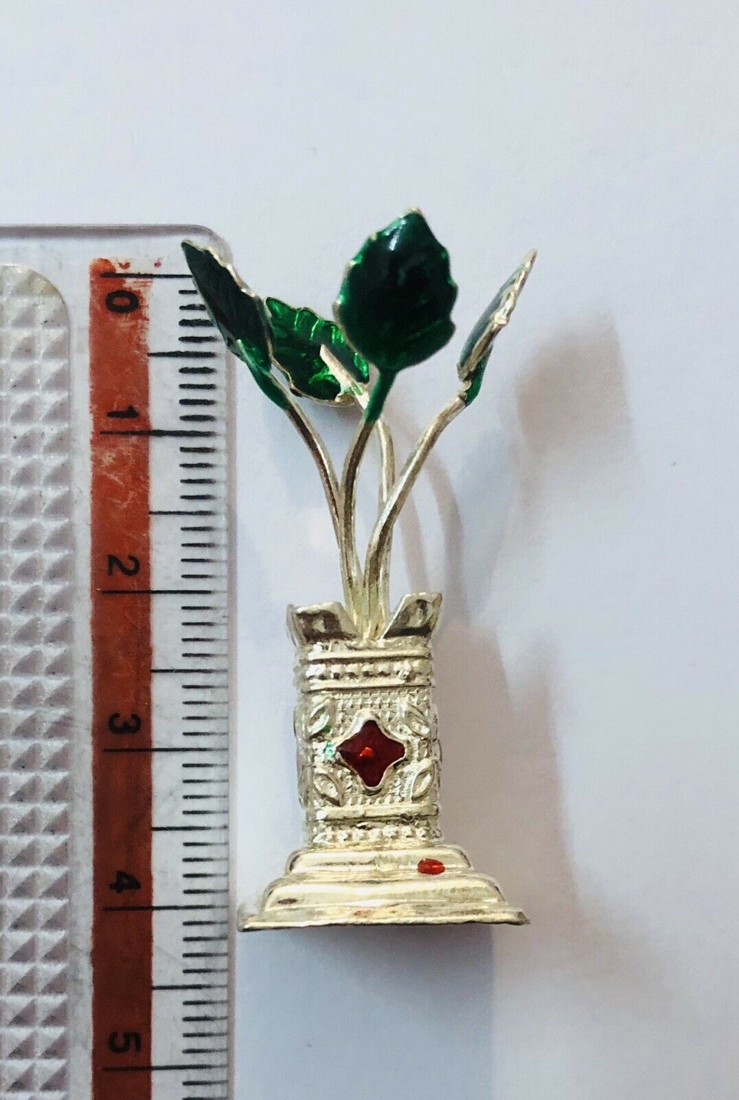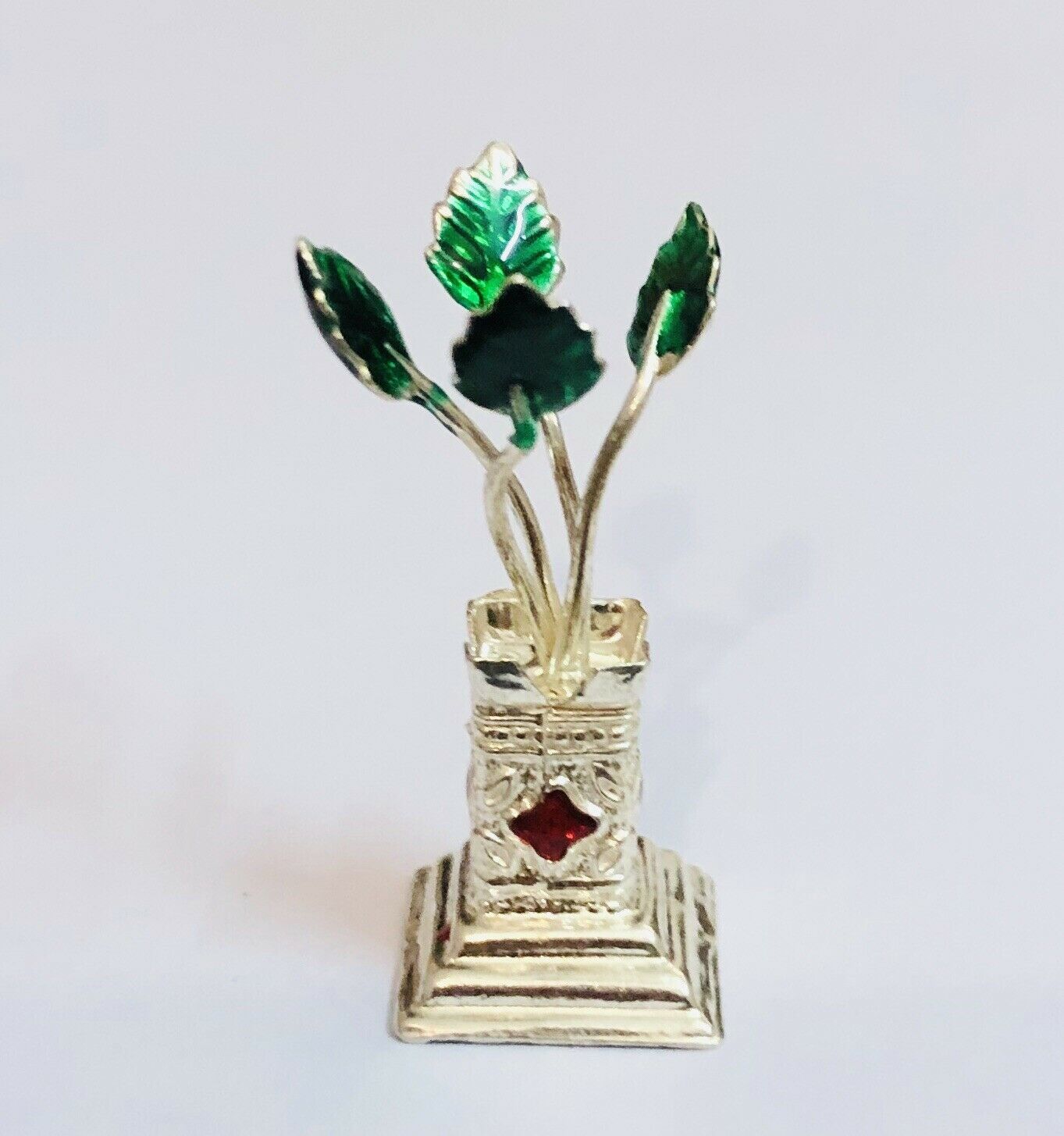 Sterling Silber Emaillierte TULSI Heilige Basilikum Pflanze 4cmX1.5cm...
