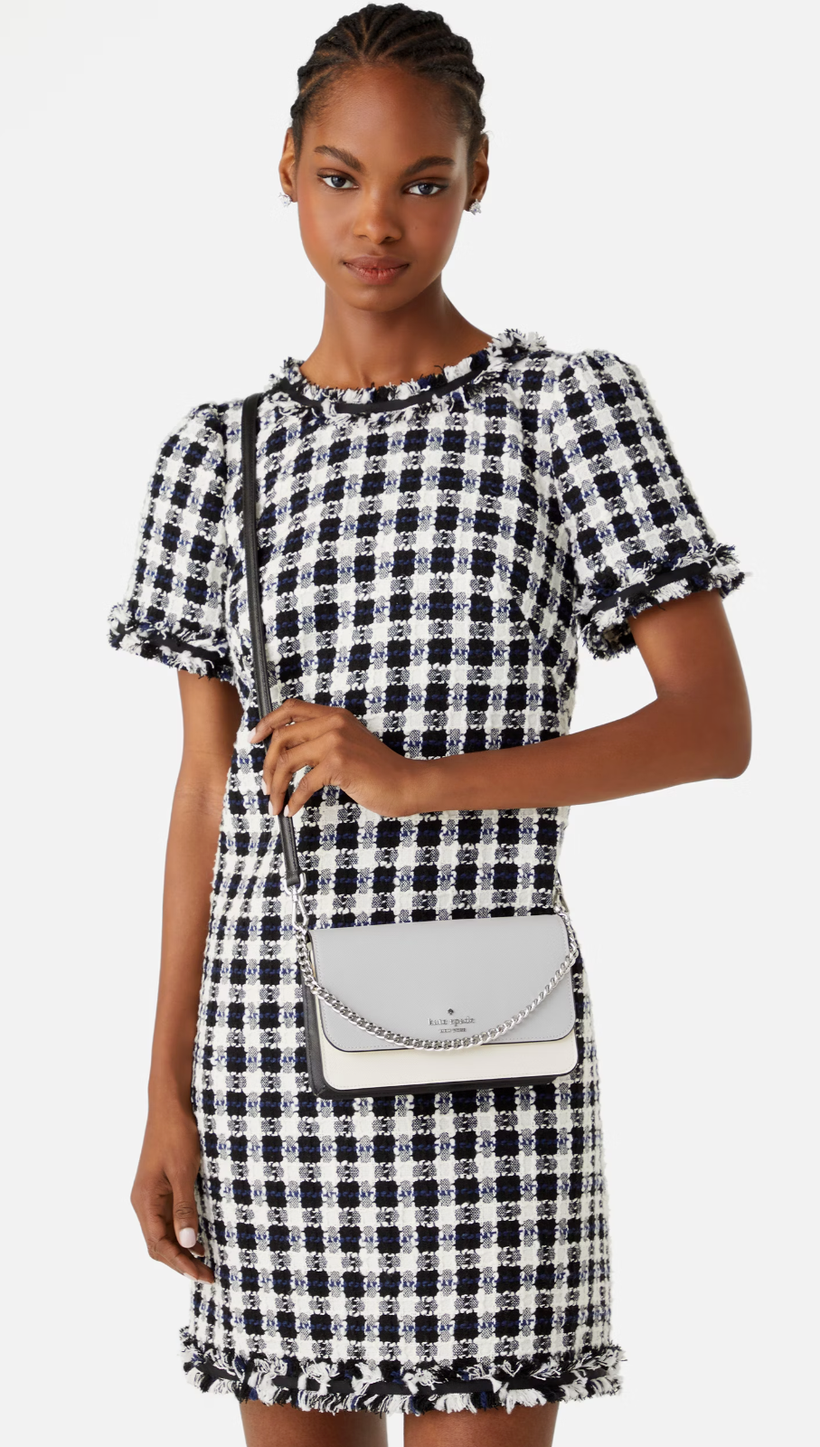 New Kate Spade Madison Small Flap Crossbody Leather Platinum Grey Multi