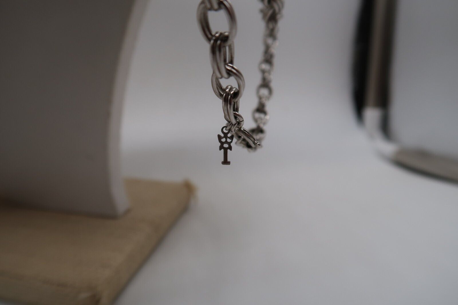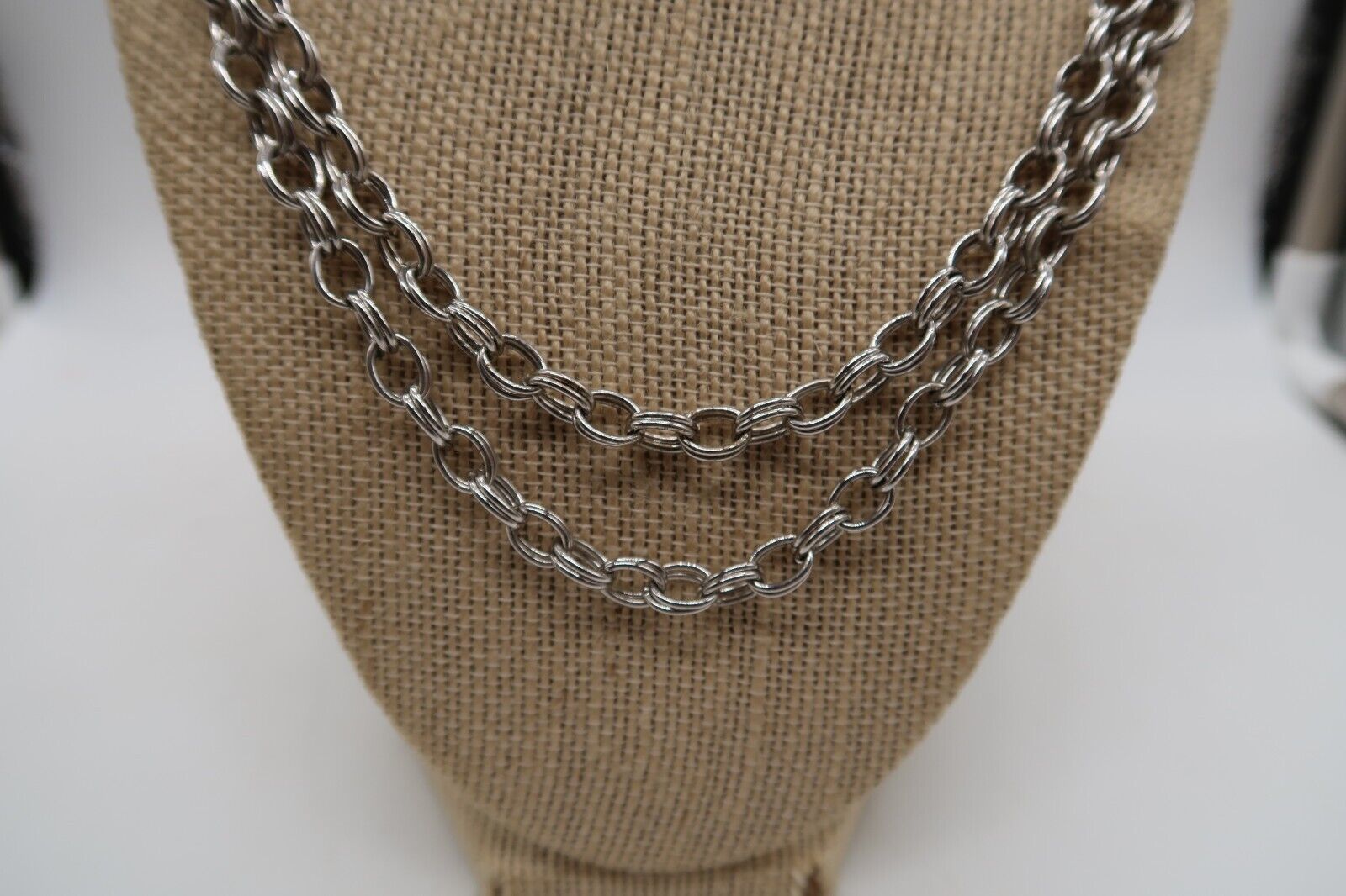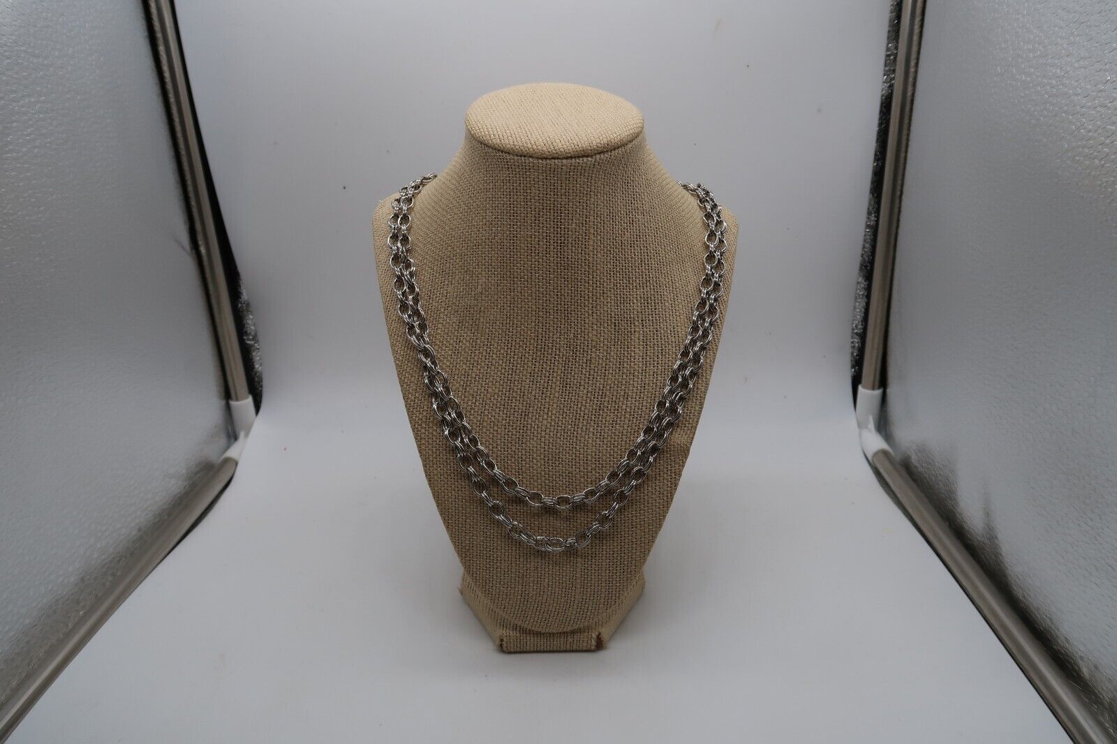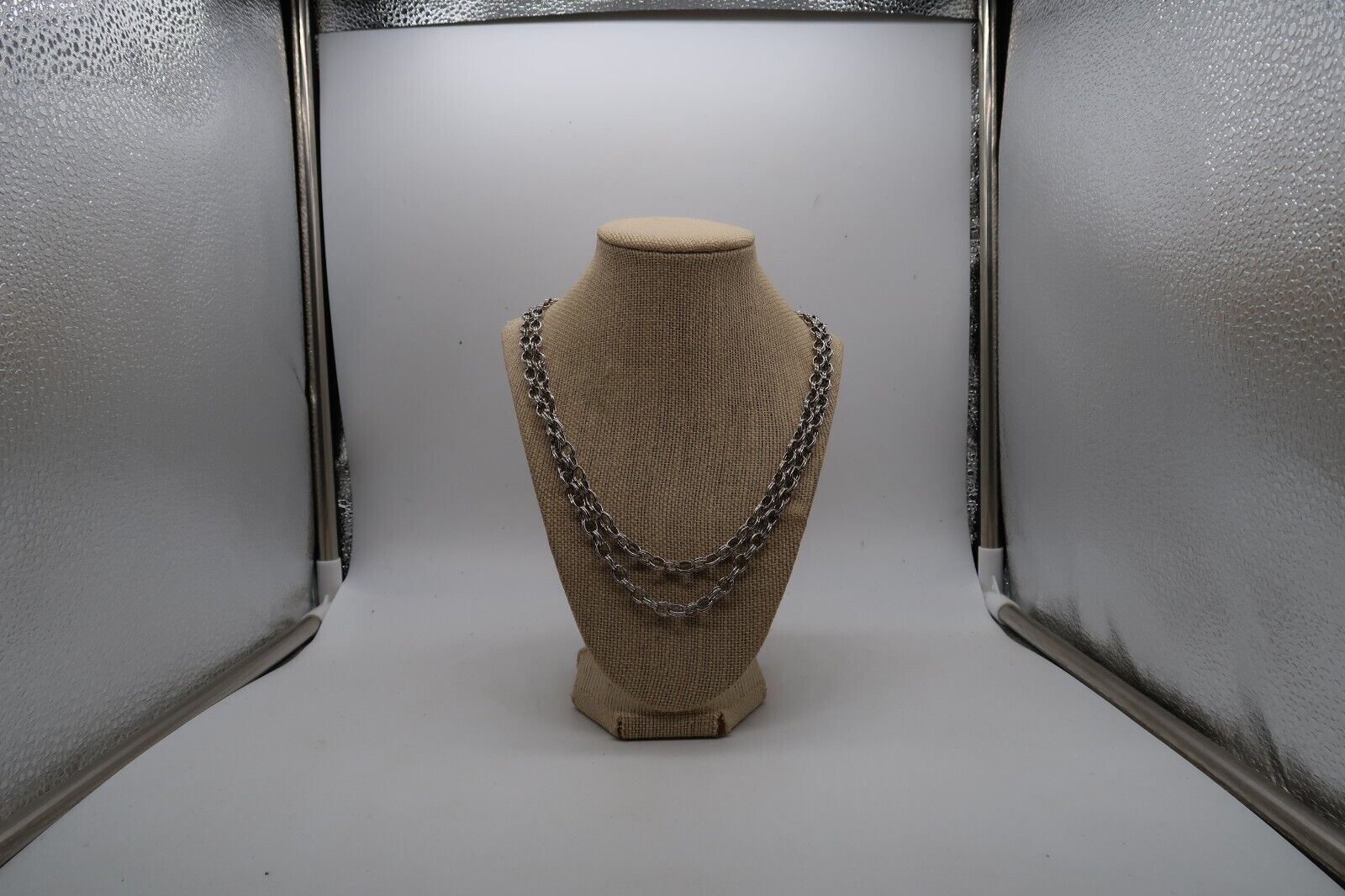 Vintage Crown Trifari Silver Tone Chunky Flapper Length Necklace Statement Piece
