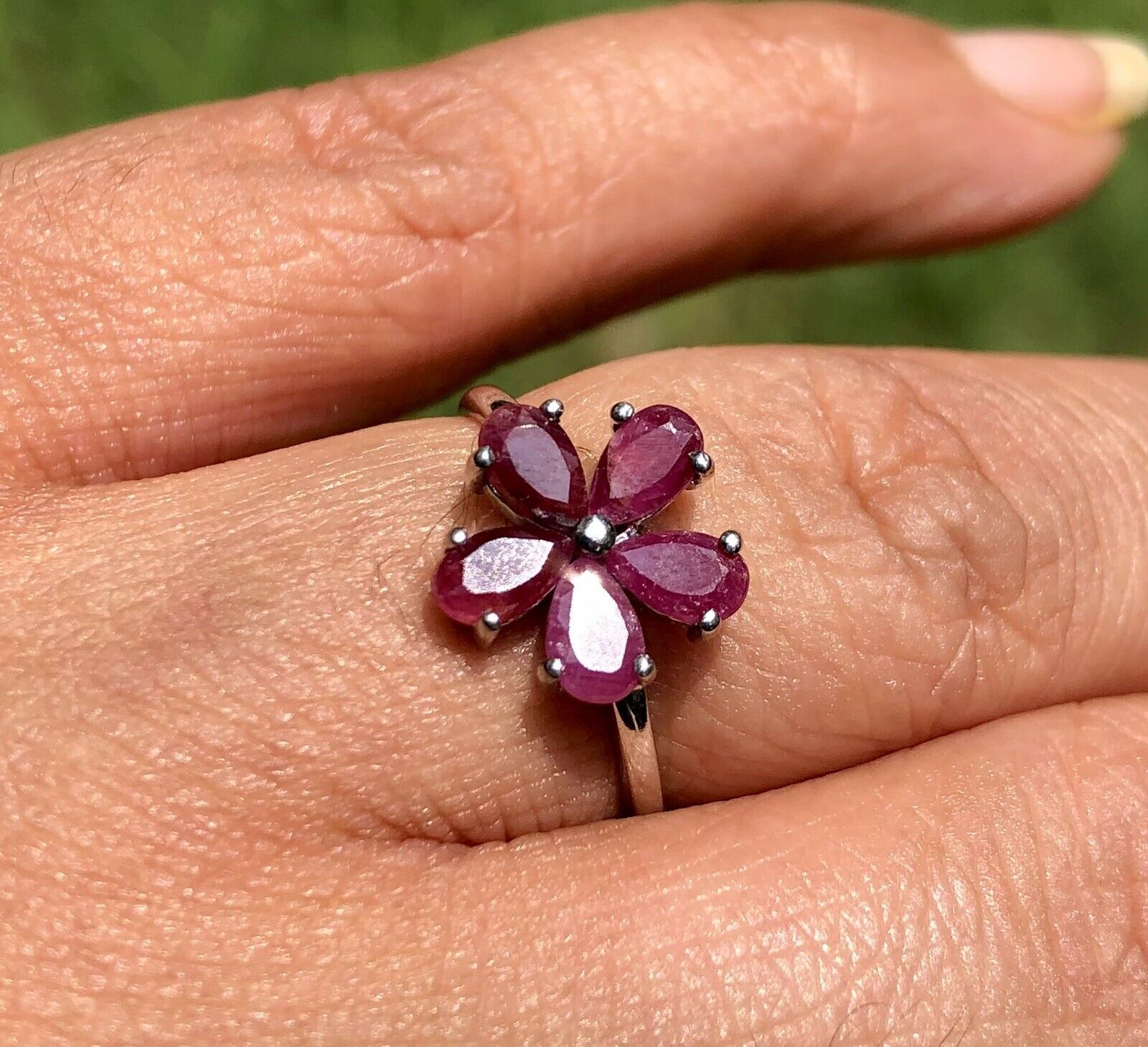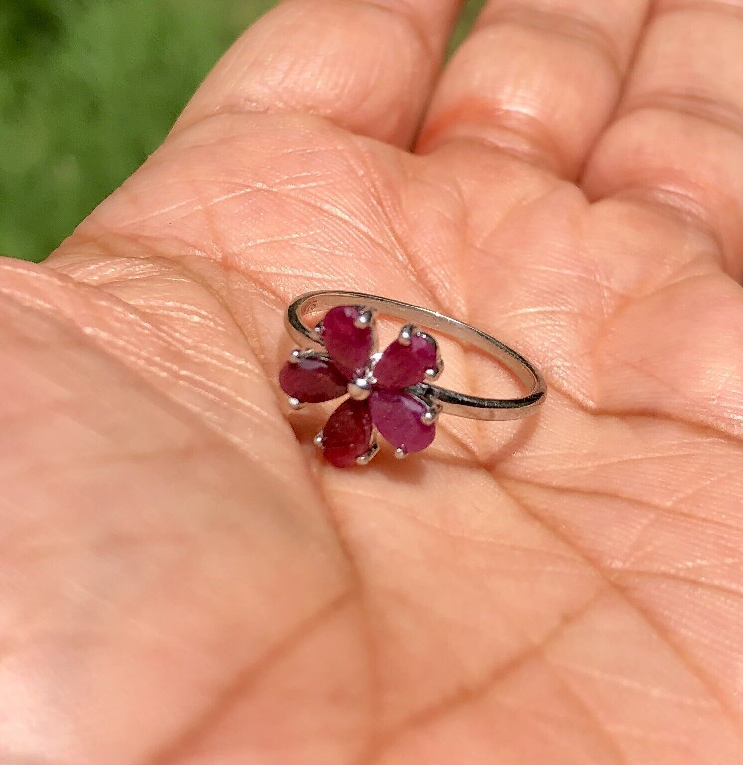Anello floreale con fiore di rubino naturale in argento sterling 925, fiore...