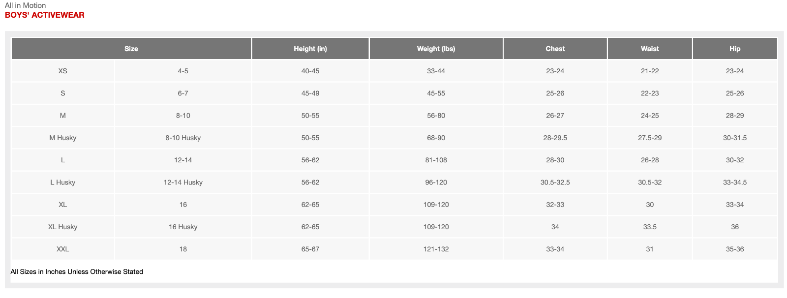 Sizing: Kids