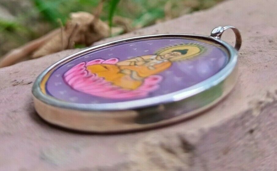 Hecho a mano pintado a mano 925 plata esterlina miniatura Buda colgante...