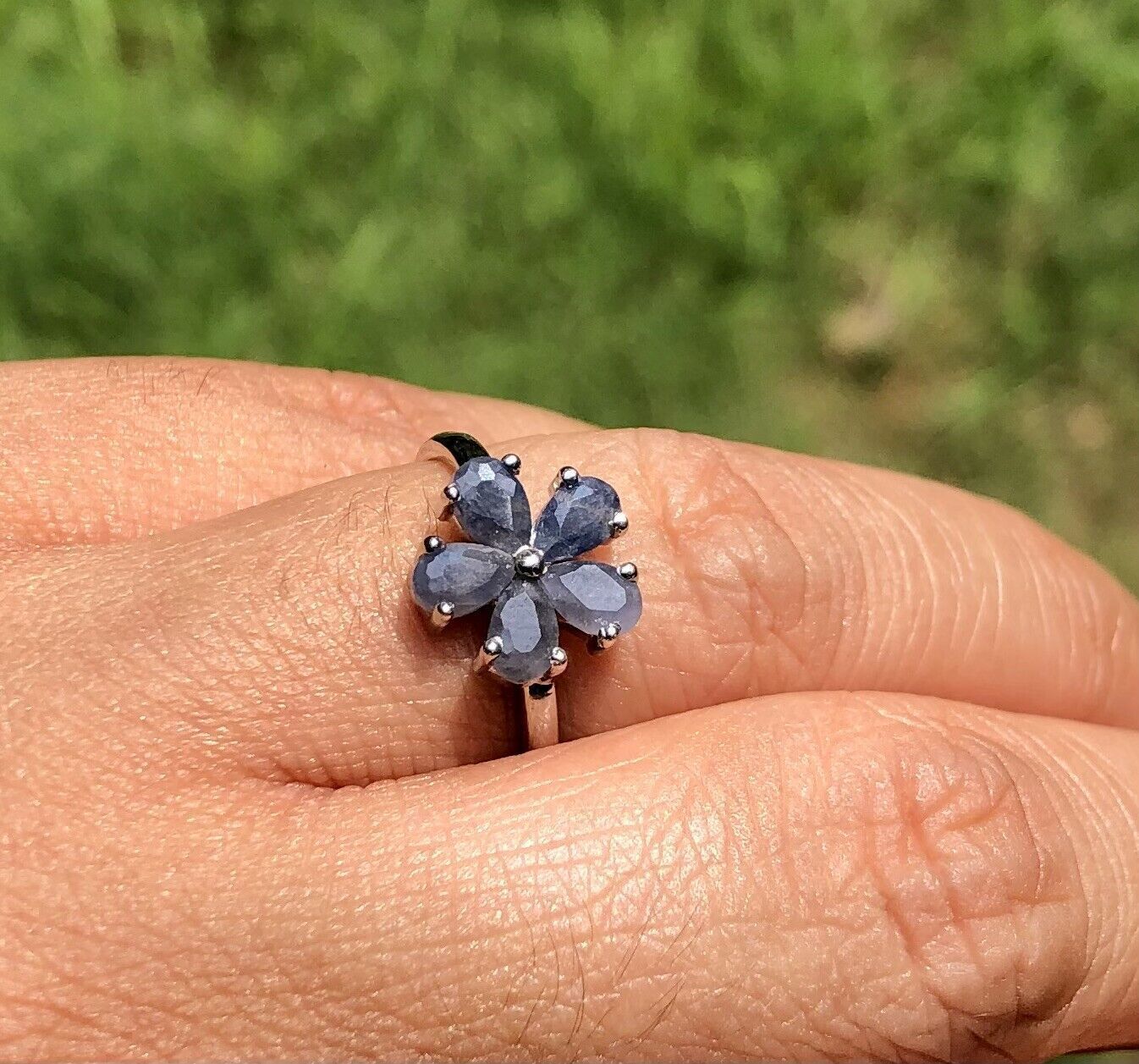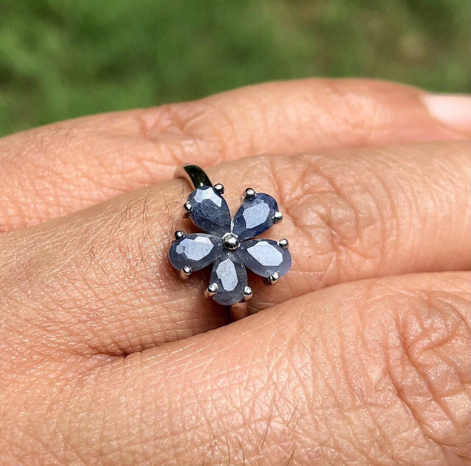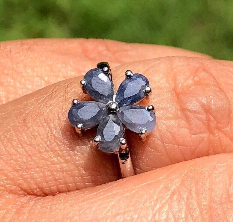 Anello floreale fiore zaffiro blu naturale in argento sterling 925, taglia...