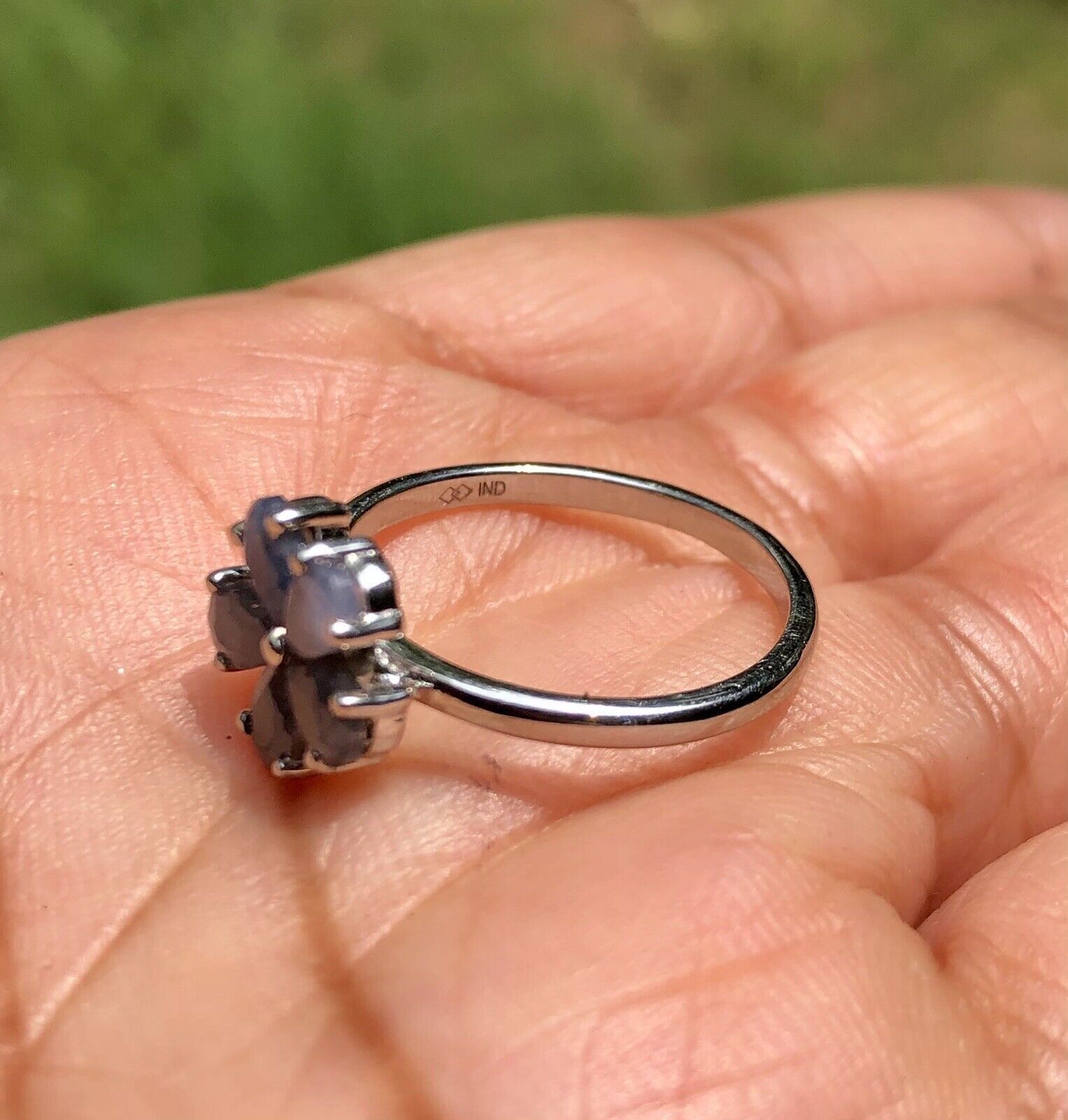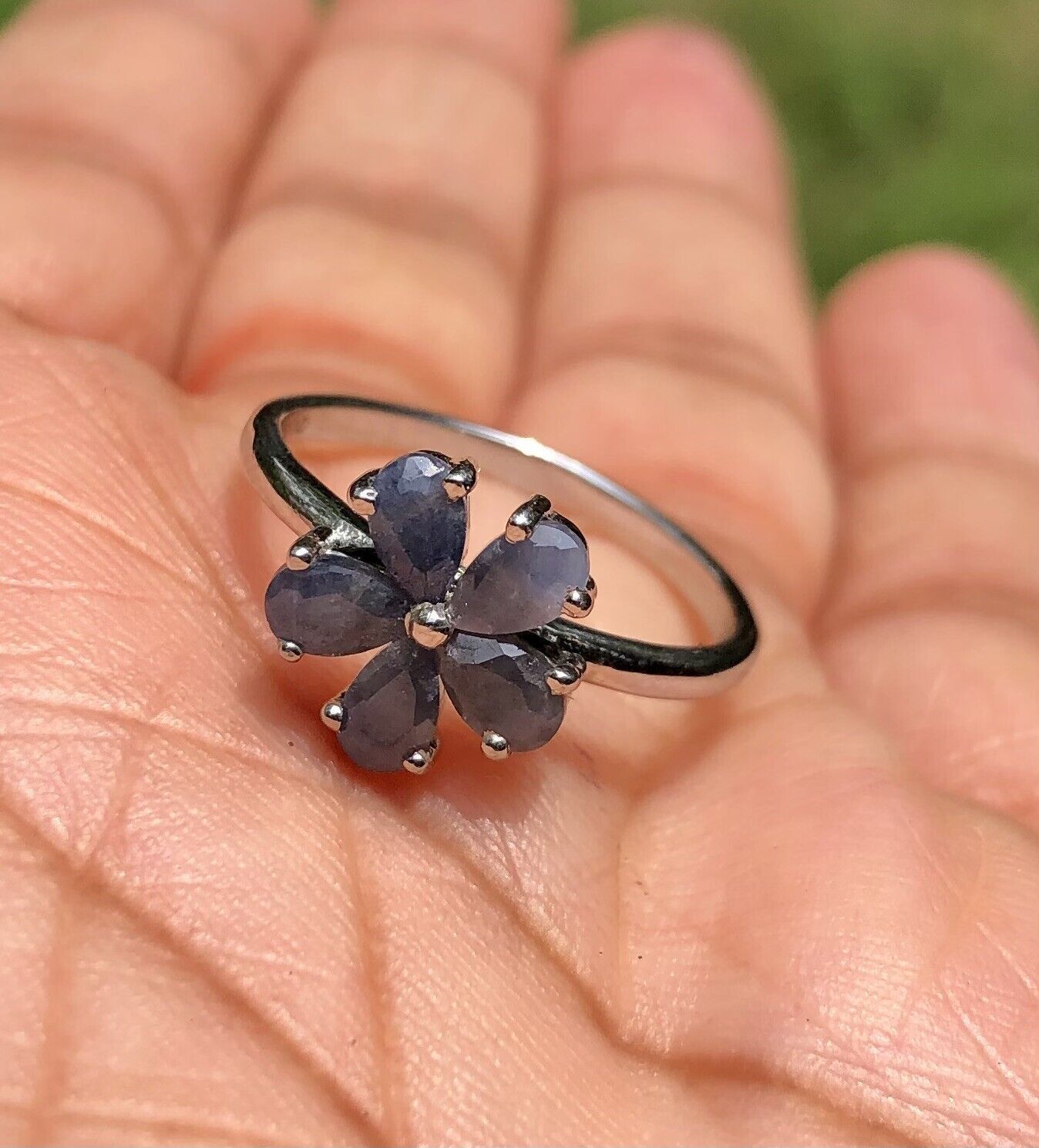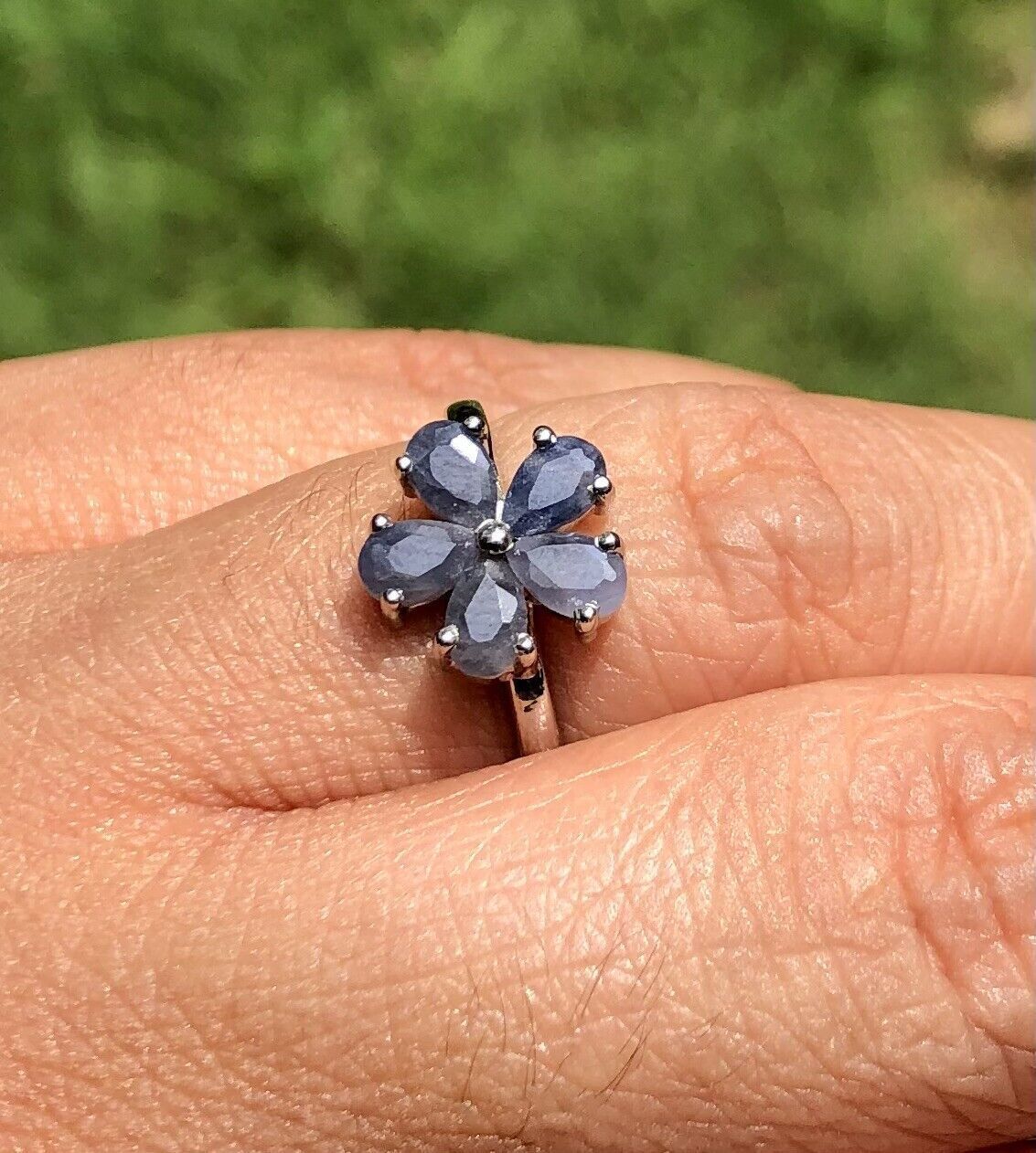 Anello floreale fiore zaffiro blu naturale in argento sterling 925, taglia...