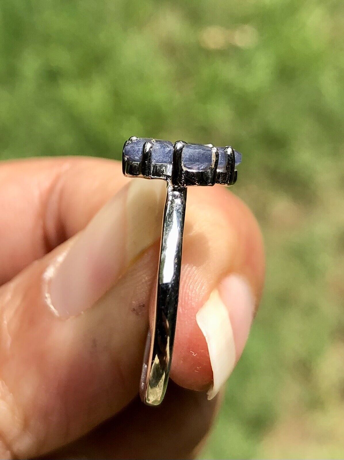 Anello con borchie in zaffiro blu, anello taglia US7,5