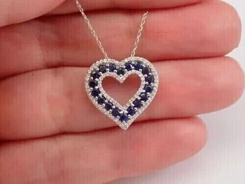 2.00Ct Round Cut Lab Created Sapphire Heart Beauty Pendant 14K White Gold Plated
