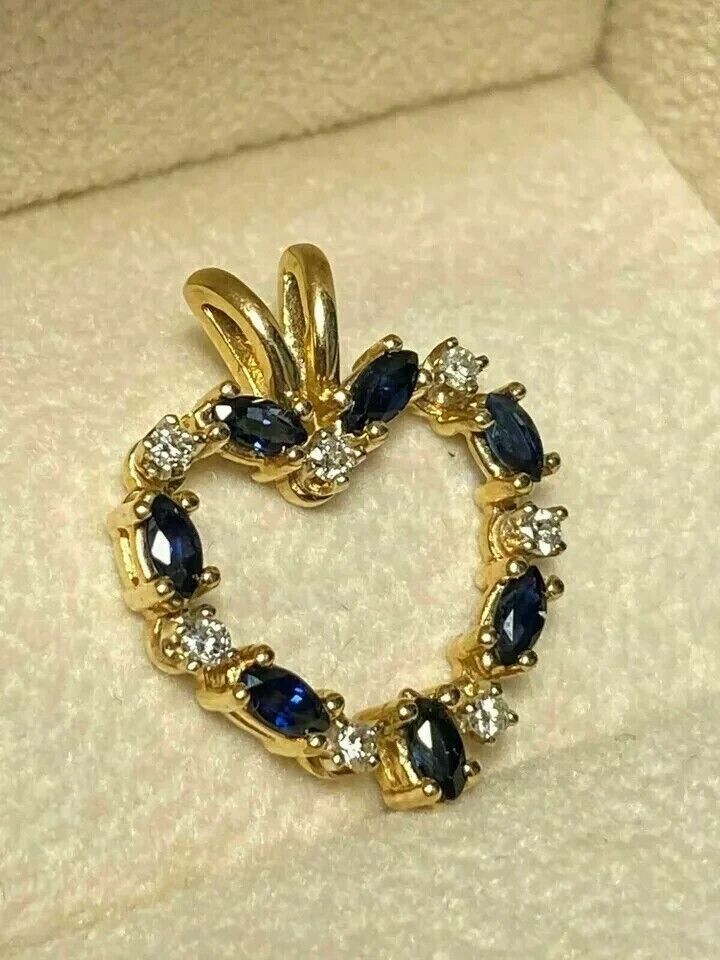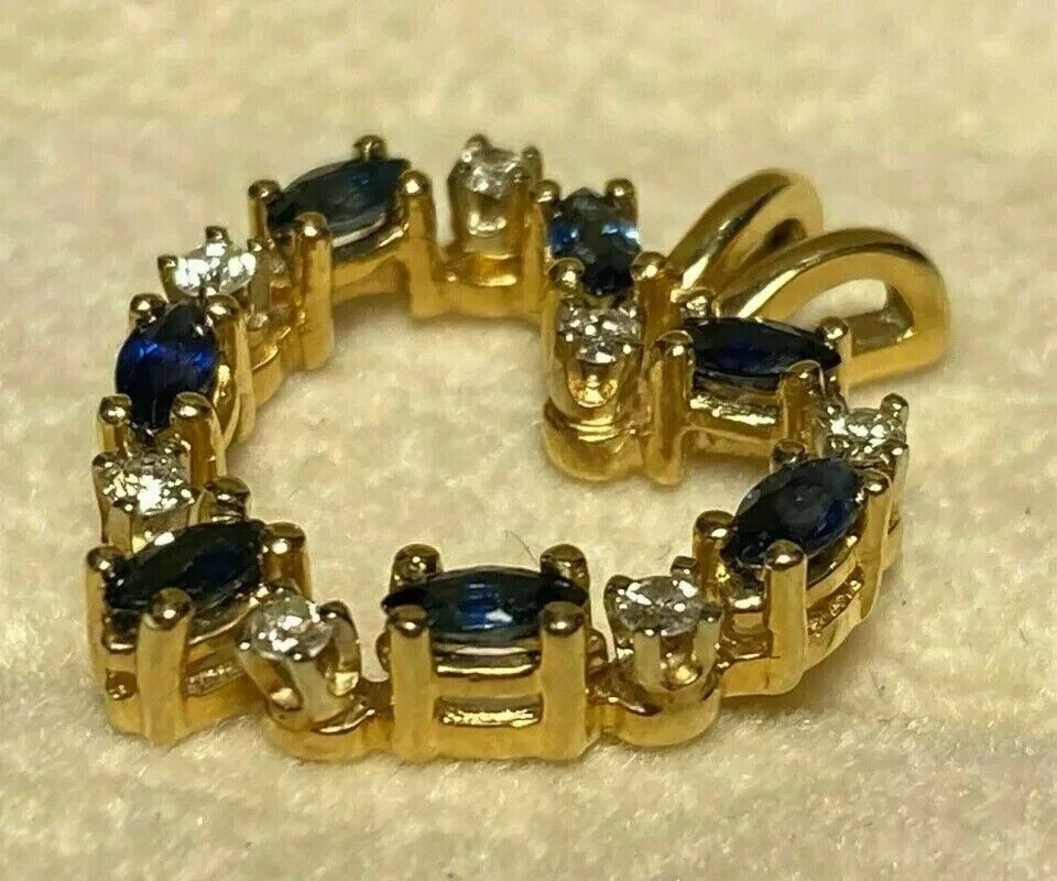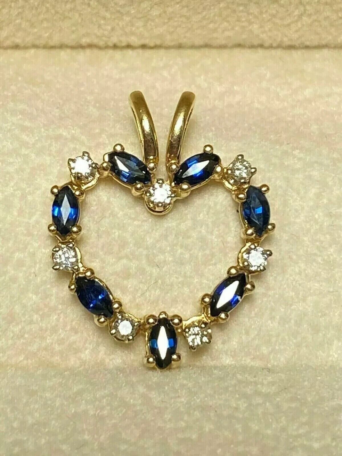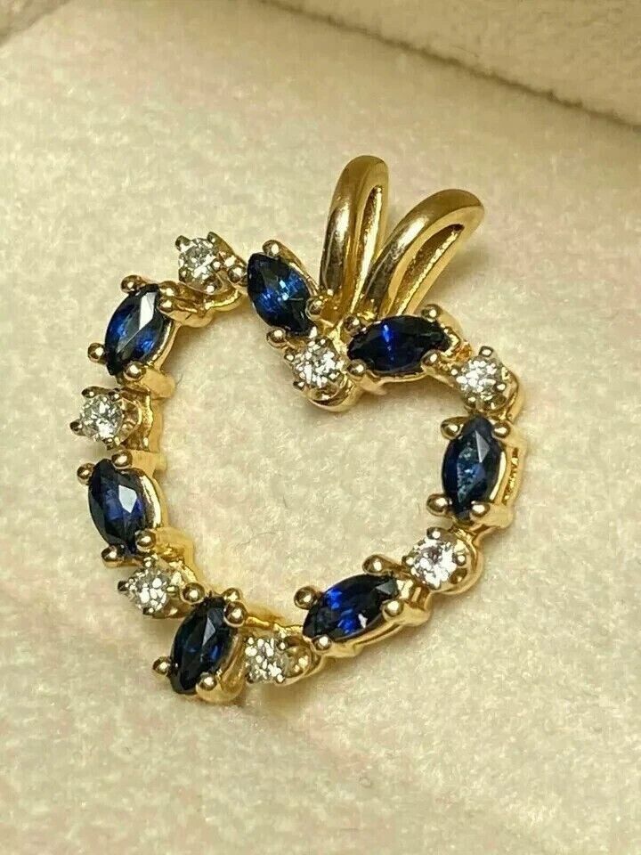 2Ct Marquise Cut Lab Created Blue Sapphire Heart Pendant 14K Yellow Gold Plated