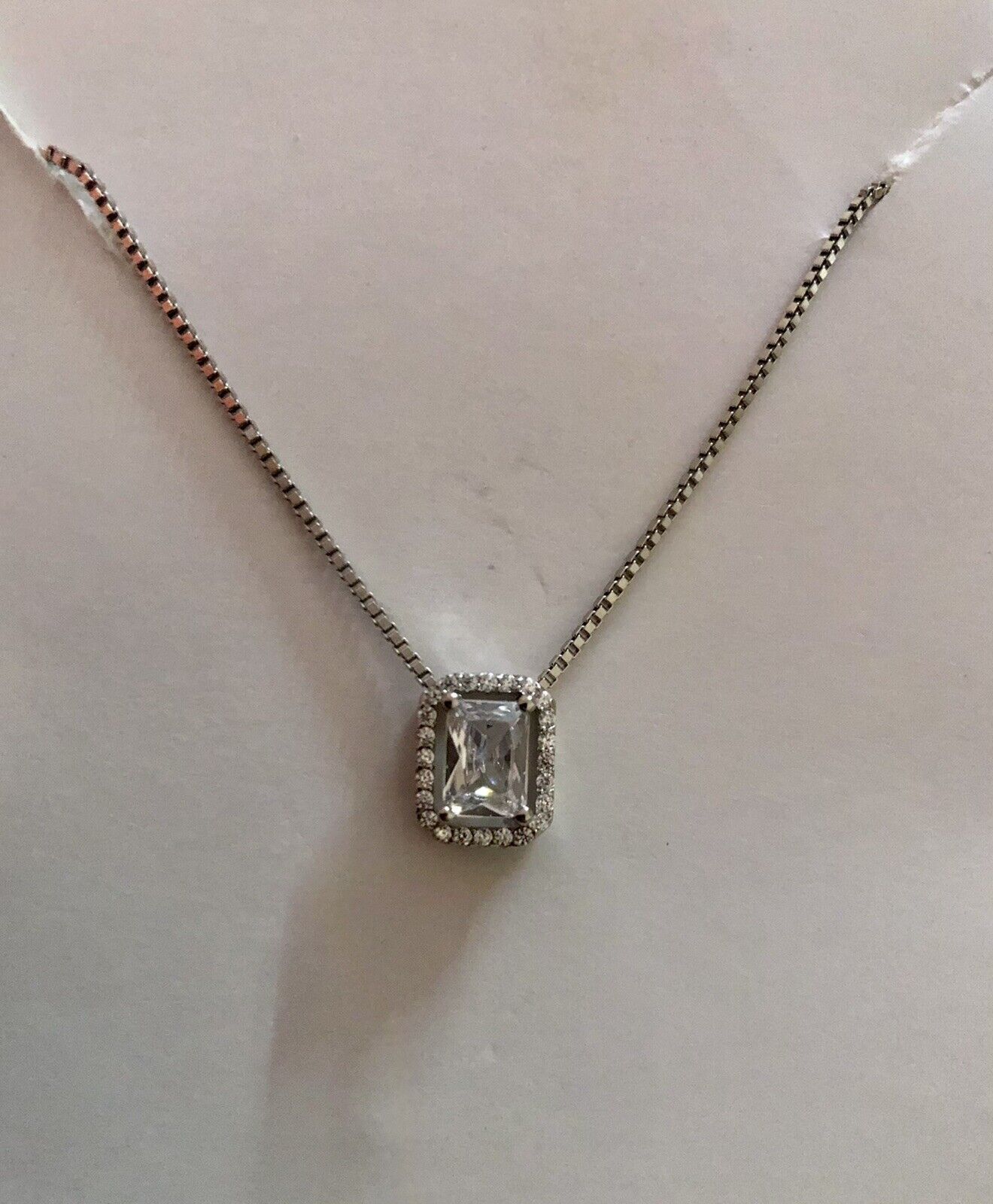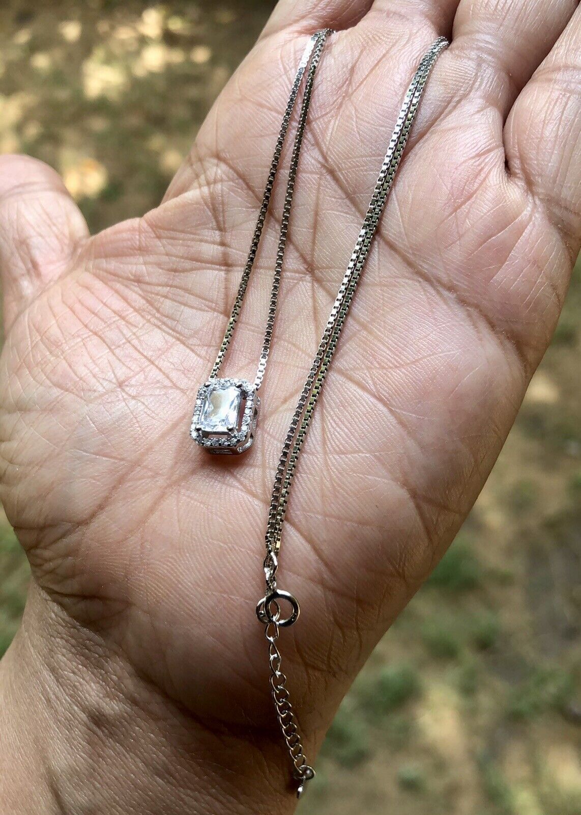 Collier CZ en argent sterling 925, plaque or blanc, extension de 16" + 1"