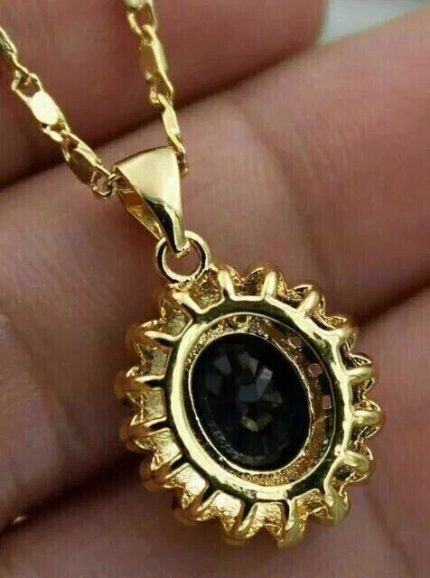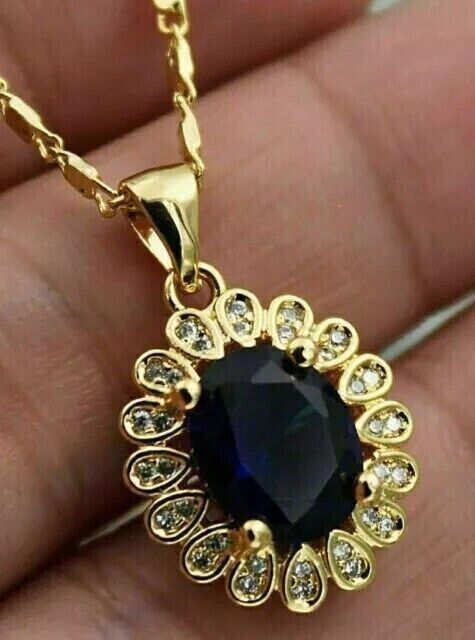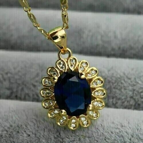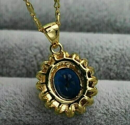2Ct Oval Lab Created Blue Sapphire Women Wedding Pendant 14K Yellow Gold Plated