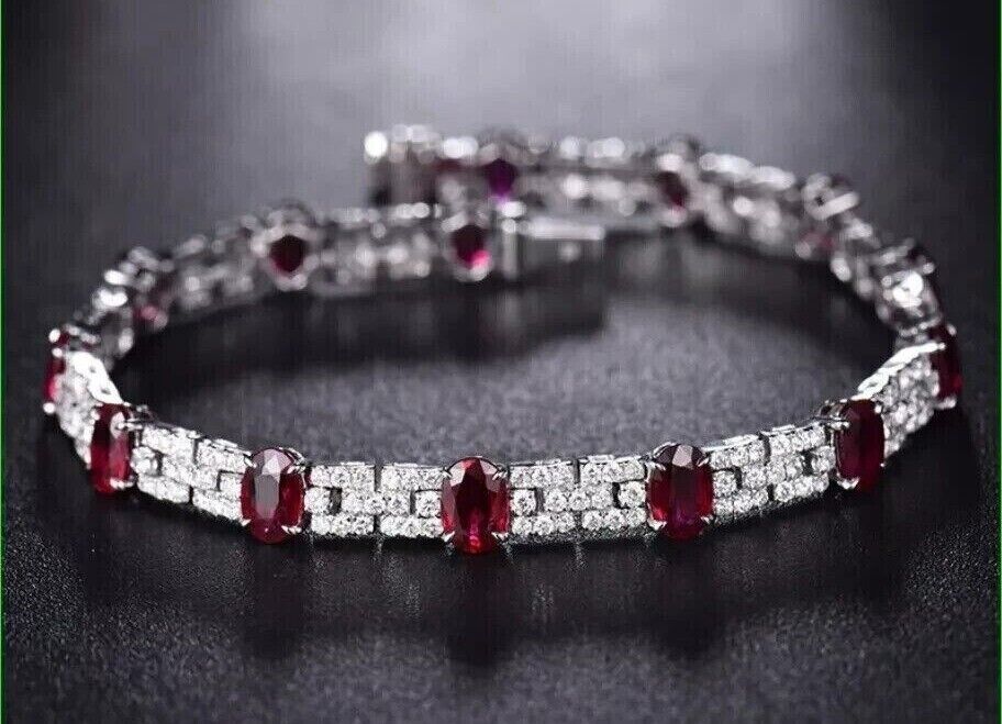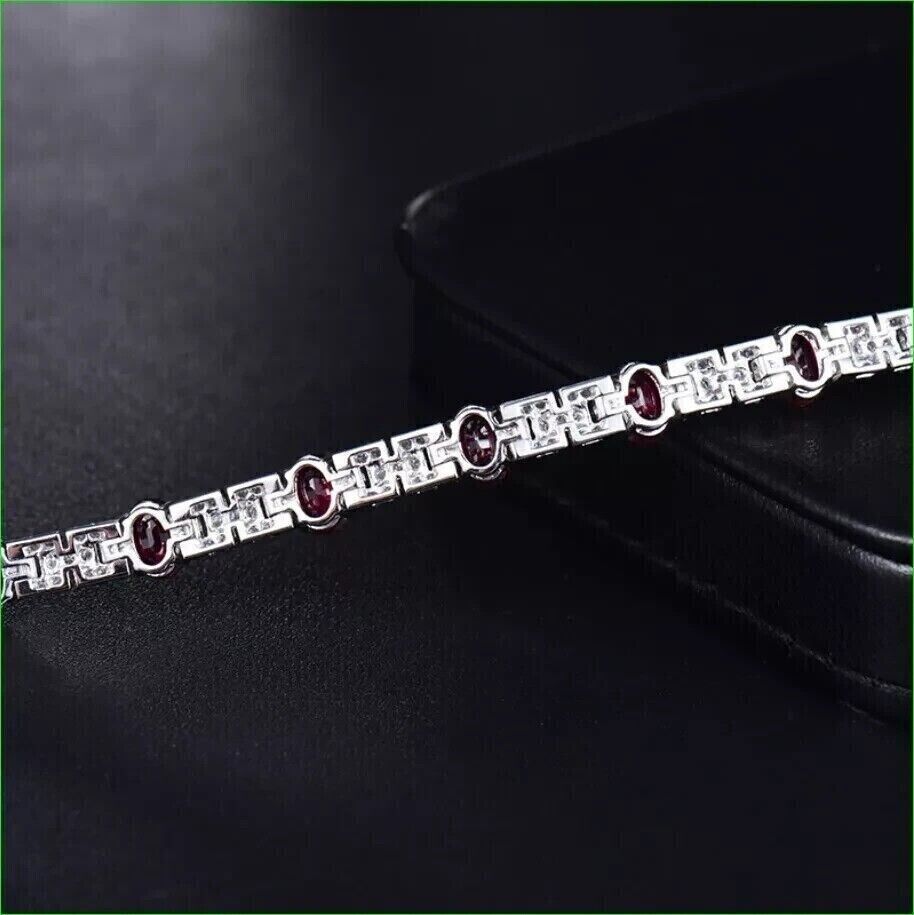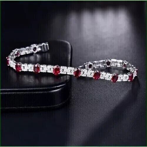 6Ct Oval Cut Lab Created Red Garnet Women Tennis Bracelet 14K White Gold Plated