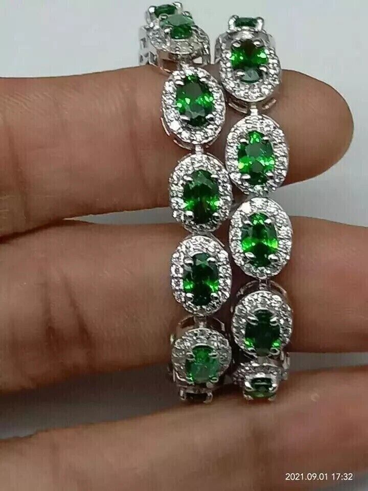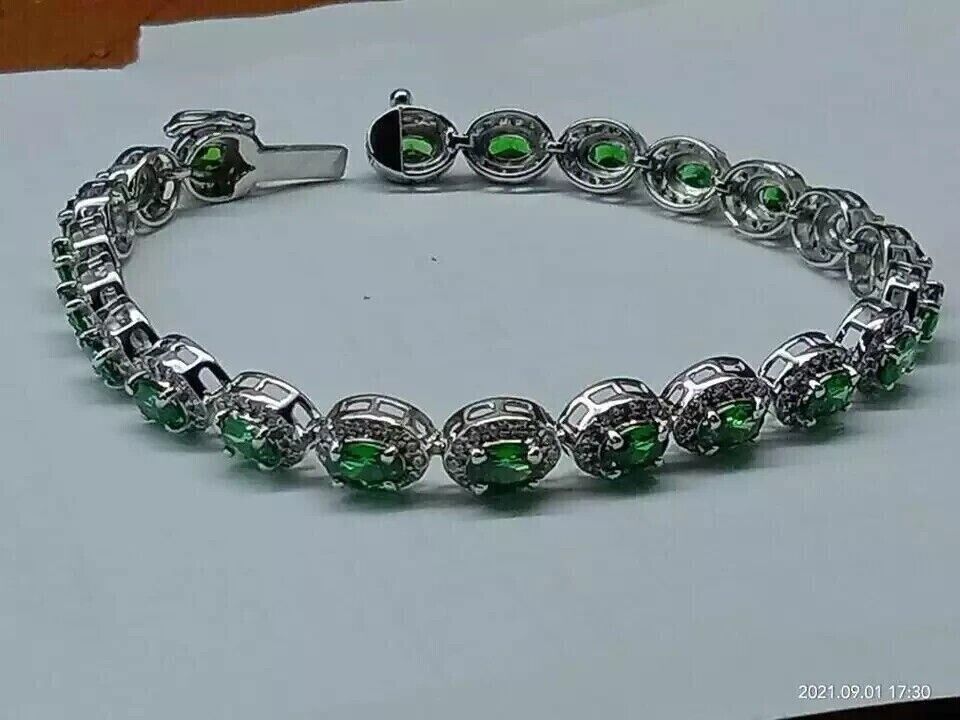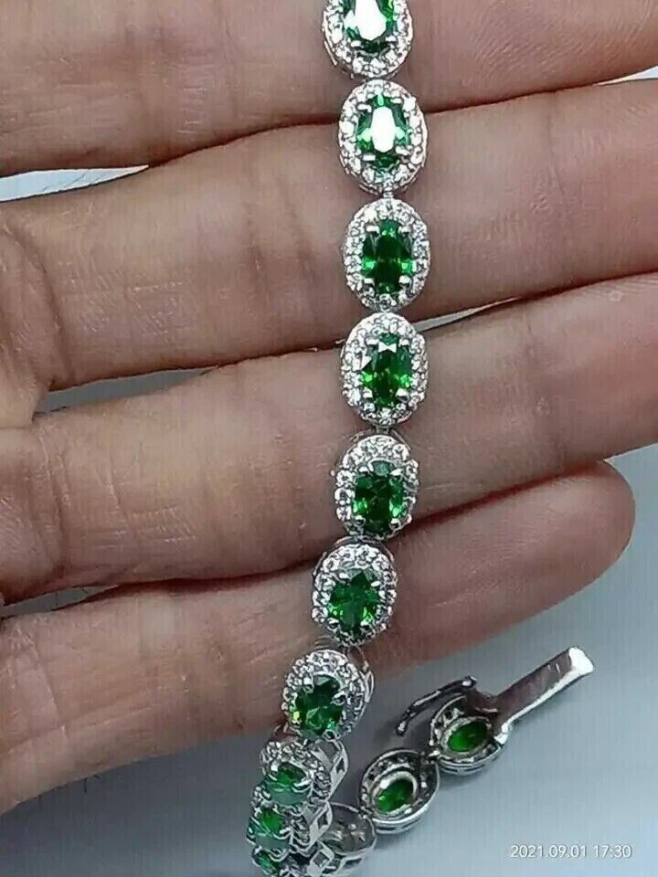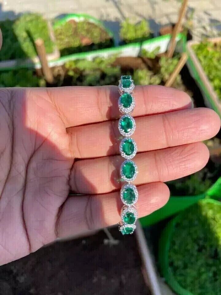 6Ct Oval Cut Lab Created Emerald Women's Tennis Bracelet 14K White Gold Plated