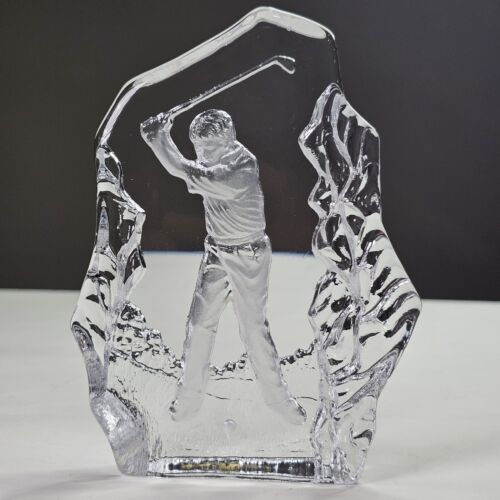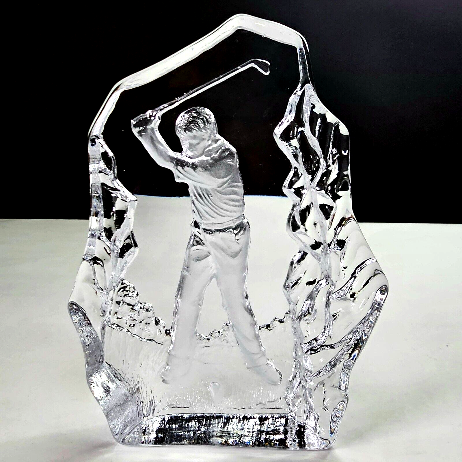 Crystal Laser Engraved 3D Iceberg Golf 6.25" Tall Office Decor Clear Heavy Glass