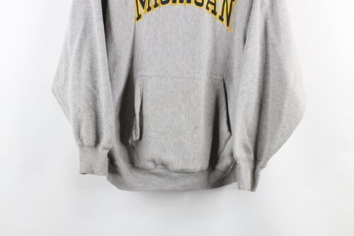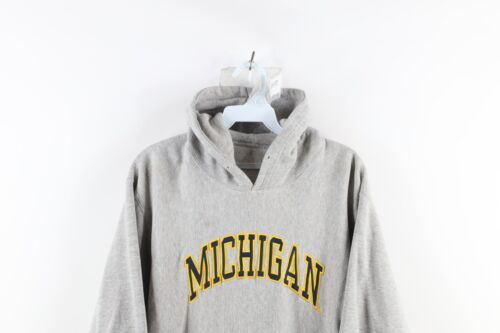 Vtg 90s Mens Small Thrashed Spell Out University of Michigan Heavyweight Hoodie