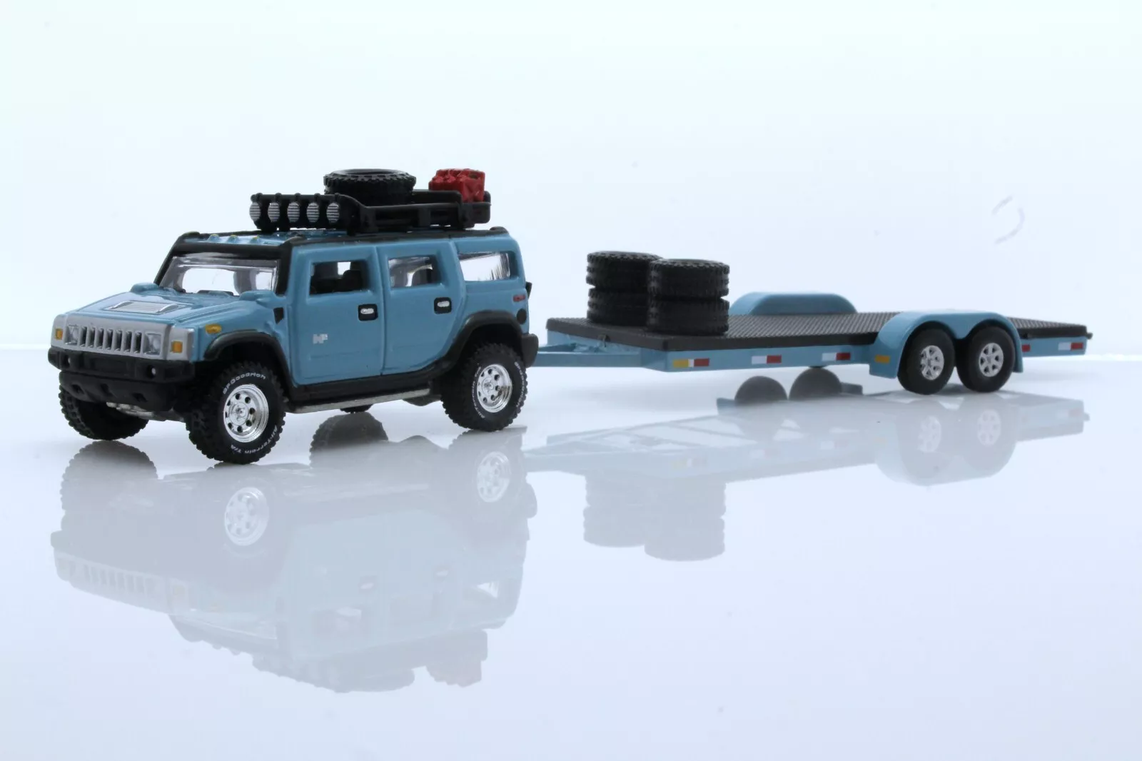 Description : New Diecast 2004 Hummer H2 Flatbed Equipment Trailer Car Hauler 1:64 Scale Diecast Blue Rubber tires, comes in a blister pack, detailed exterior, metal body, and chassis. It's an excellent addition. These premium diecast models are a must have in for any collection. Suitable for birthday gifts, Christmas and other celebrations