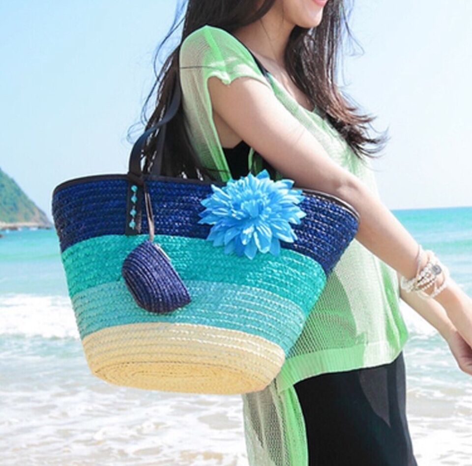 Woven straw tote bag Handmade French market Basket Moroccan Basket, Beach Bag