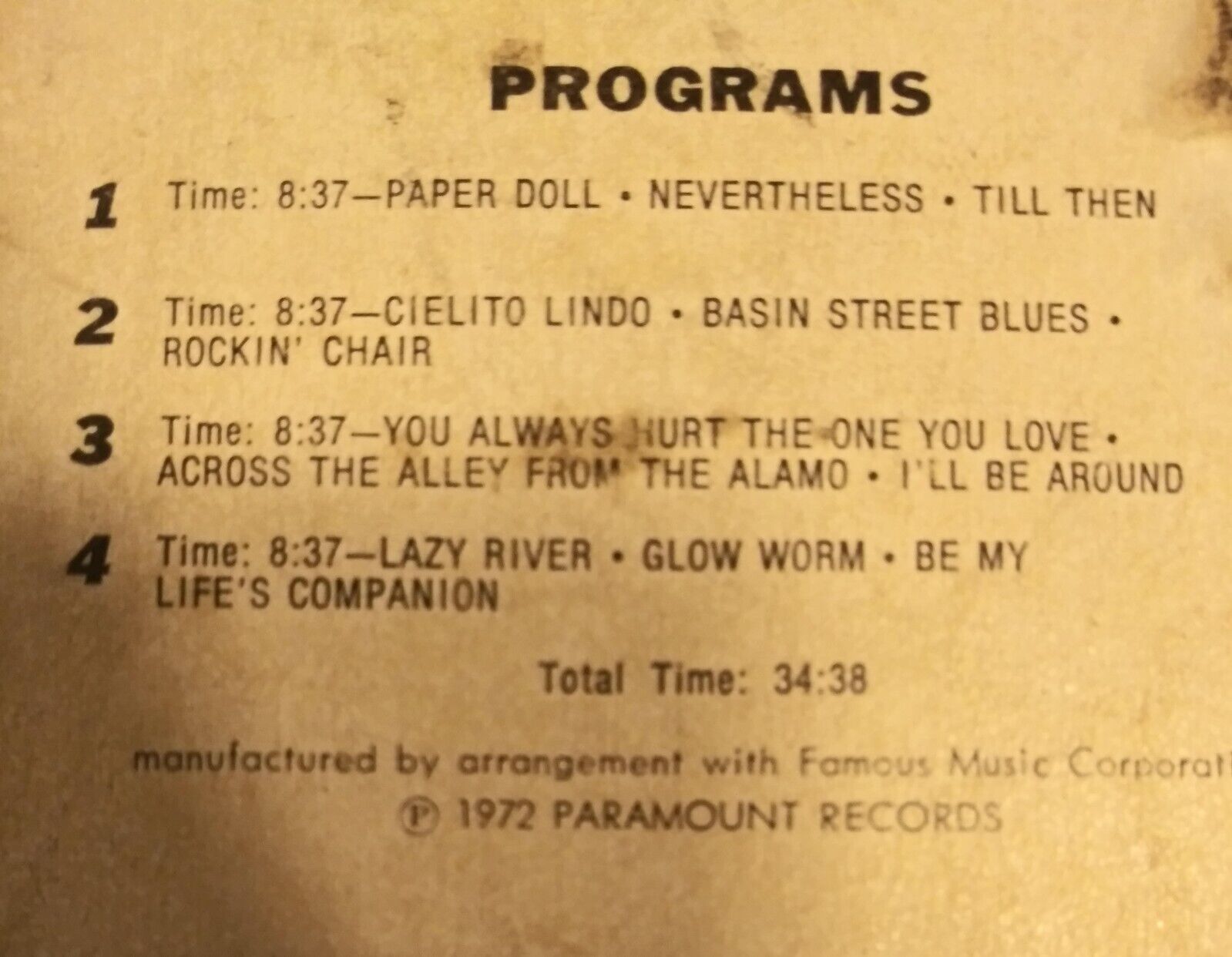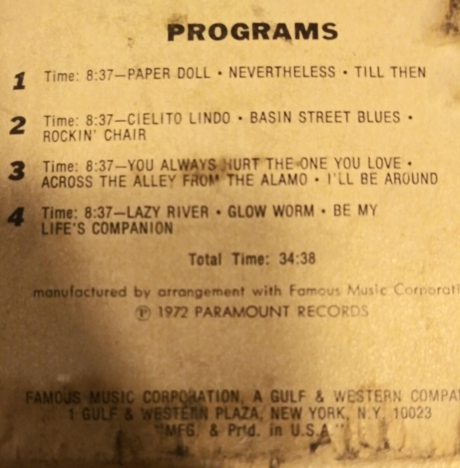 I have restored over a thousand 8 track tapes, I do a very thorough and professional job. Not only do I replace the pressure pads (which is on about 95% of all tapes) but I also replace the sensing foil but then I go a step further and apply splice tape on the underside of where the sensing foil is, that is just extra protection so if someday the sensing foil ever fails the tape won't come apart and your tape player won't eat it up! I also remove the roller and clean it thoroughly and also the spindle it goes on, I also remove the reel and clean the spindle it goes on and both spindles receive a very light lubrication. The outside tape cartridge itself is thoroughly cleaned and if there are many bad scuffs I even go so far as to use a polishing compound to remove them, only if they are very distracting, I spend way too much time on each tape as it is but it's just because I want these to be treasured by someone who cares about the antiquated formats that are no more. I of course have to charge a bit more than some others but surprisingly in many cases I'm only a few dollars higher than ones being sold untested, which you really should NEVER buy unless you know how to do the necessary things that will need to be done on over 90% of them. Every tape after restoration is then put into the tape player and played all the way thru till the foil hits the sensor and changes tracks. You do not need to be even slightly concerned about these tapes functioning properly when you receive them. You do need to make sure your tape player is maintained properly tho, especially cleaning the capstan. If you're not familiar with proper maintenance take a bit of time and watch a few videos on youtube on properly cleaning your 8 track machine.