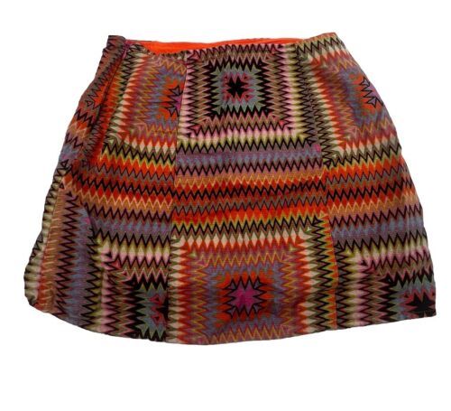 Urban Outfitters Size Small Petite Notched Orange Zig Zag Linen Mini Skirt
