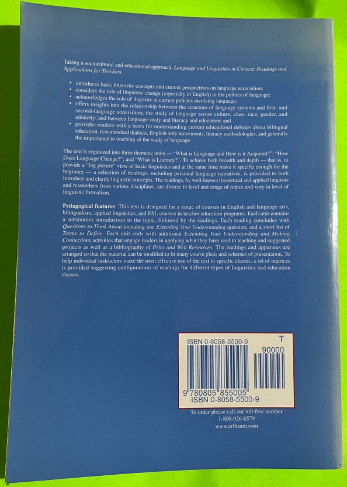 Taking a sociocultural and educational approach, Language and Linguistics in Context: Readings and Applications for Teachers: